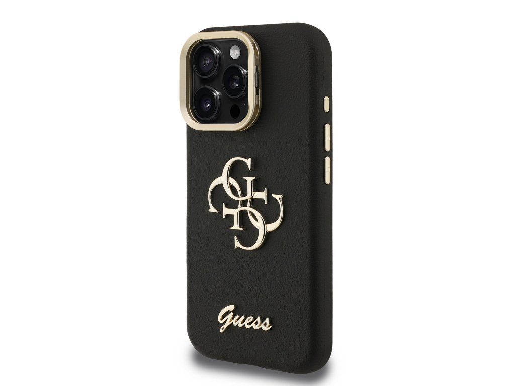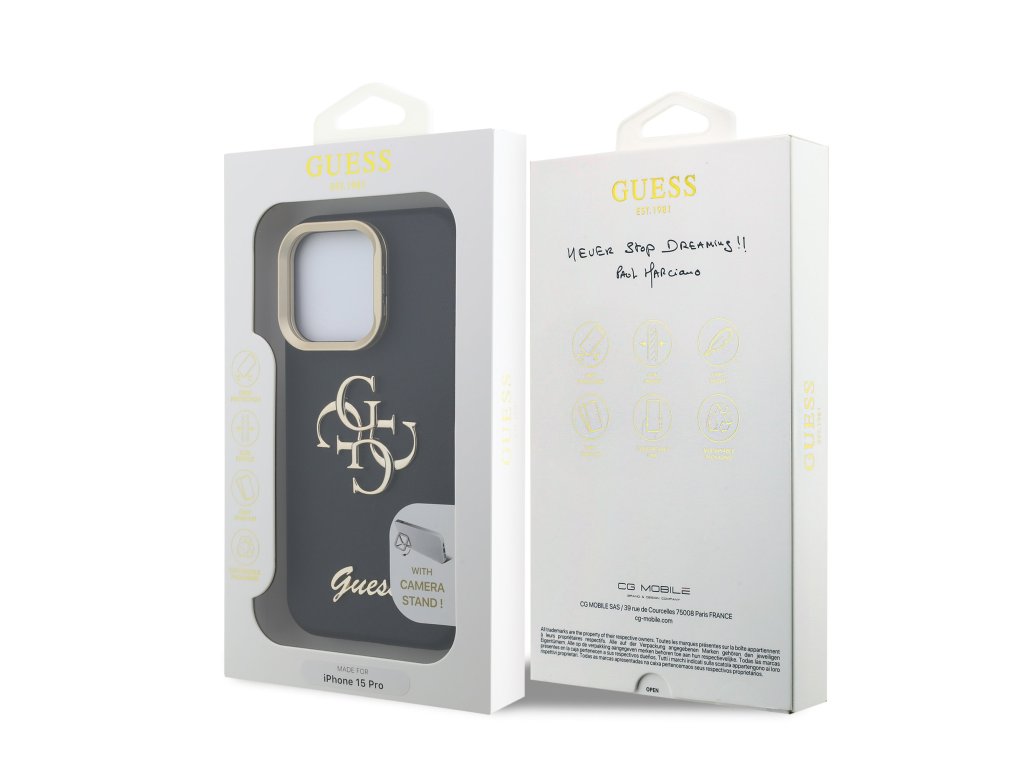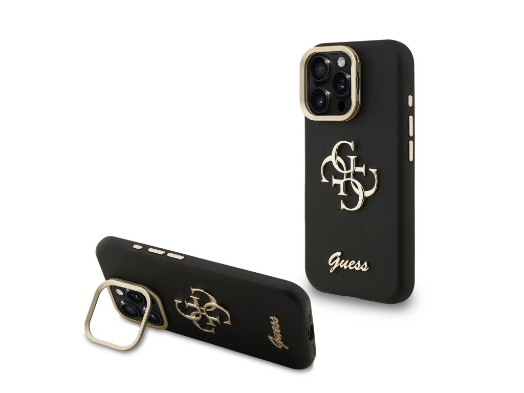 Guess PU Grained 4G Logo Stand Camera Frame Zadní Kryt pro iPhone 15 Pro Black