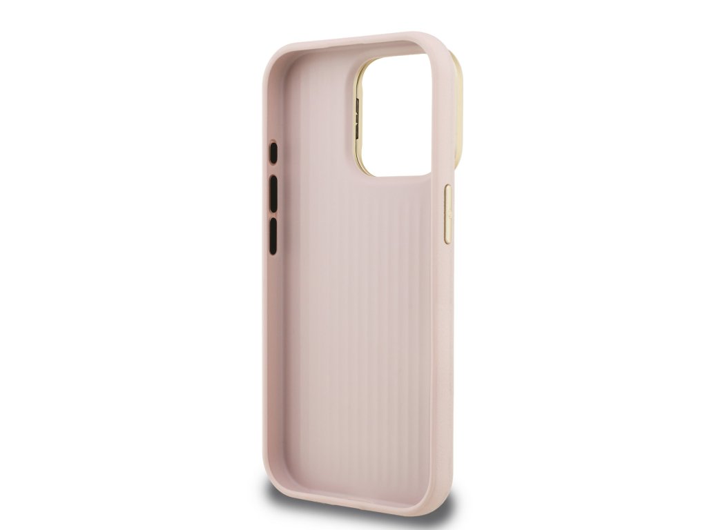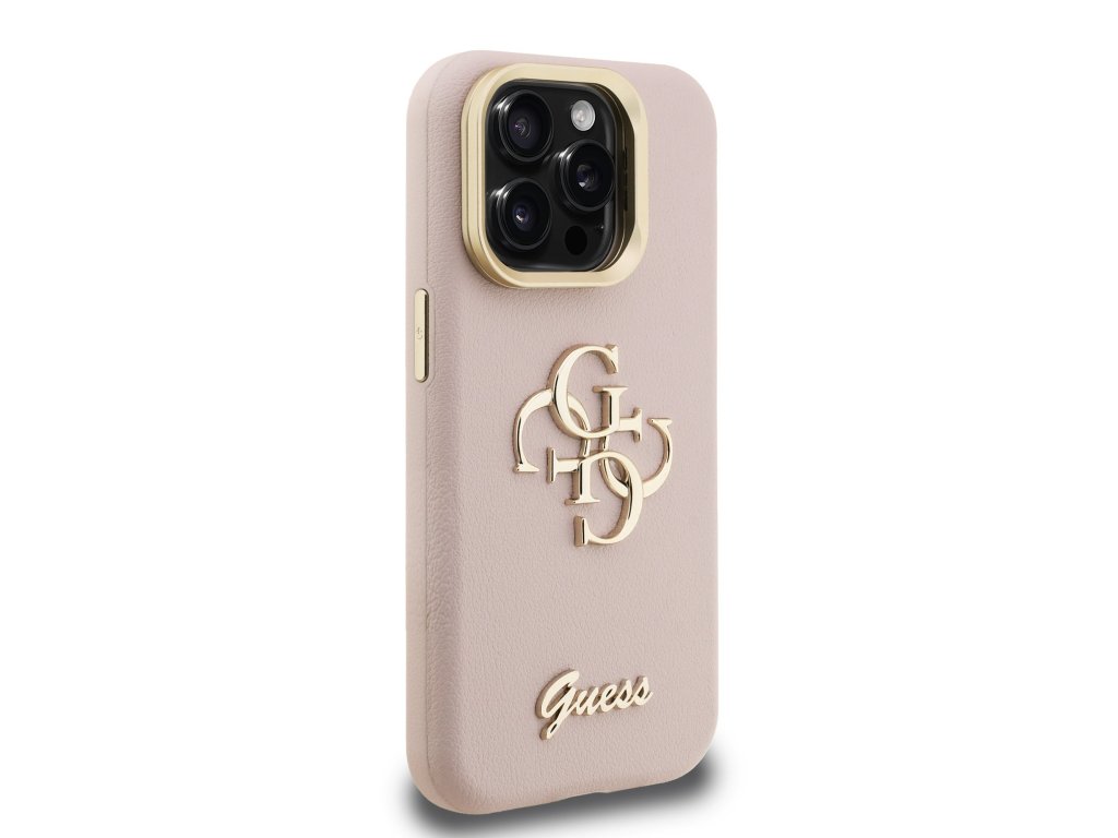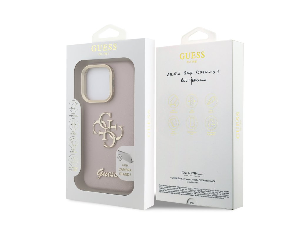 Guess PU Grained 4G Logo Stand Camera Frame Zadní Kryt pro iPhone 15 Pro Pink