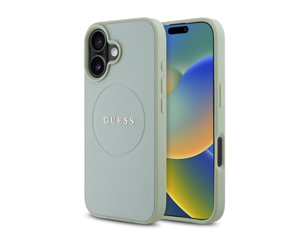 Guess PU Grained Classic Logo MagSafe Zadní Kryt pro iPhone 16 Green