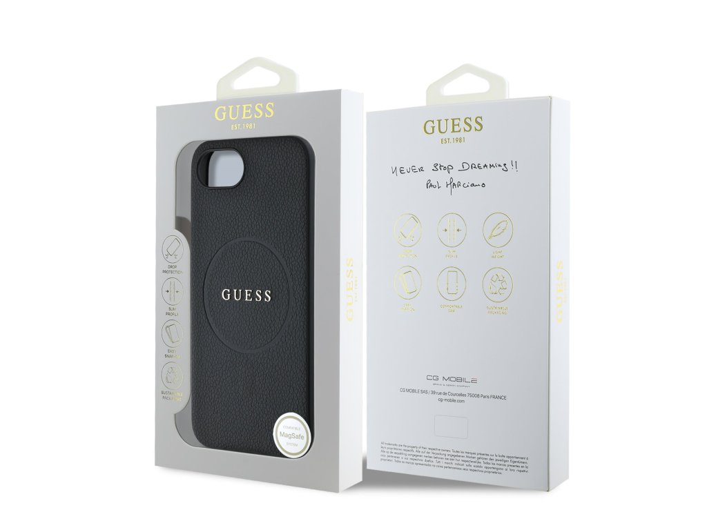 Guess PU Grained Classic Logo MagSafe Zadní Kryt pro iPhone SE4 Black