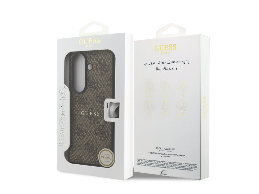 Guess "4G" elegantní potisk a kovové logo dodávají krytu luxusní a zároveň decentní vzhled.