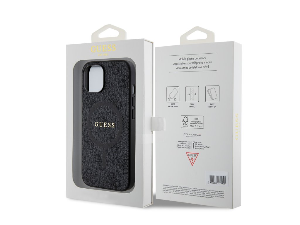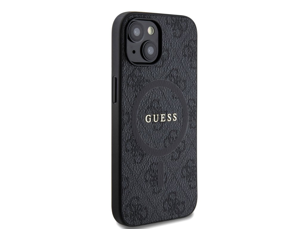 Guess PU Leather 4G Colored Ring MagSafe Zadní Kryt pro iPhone 15 Black