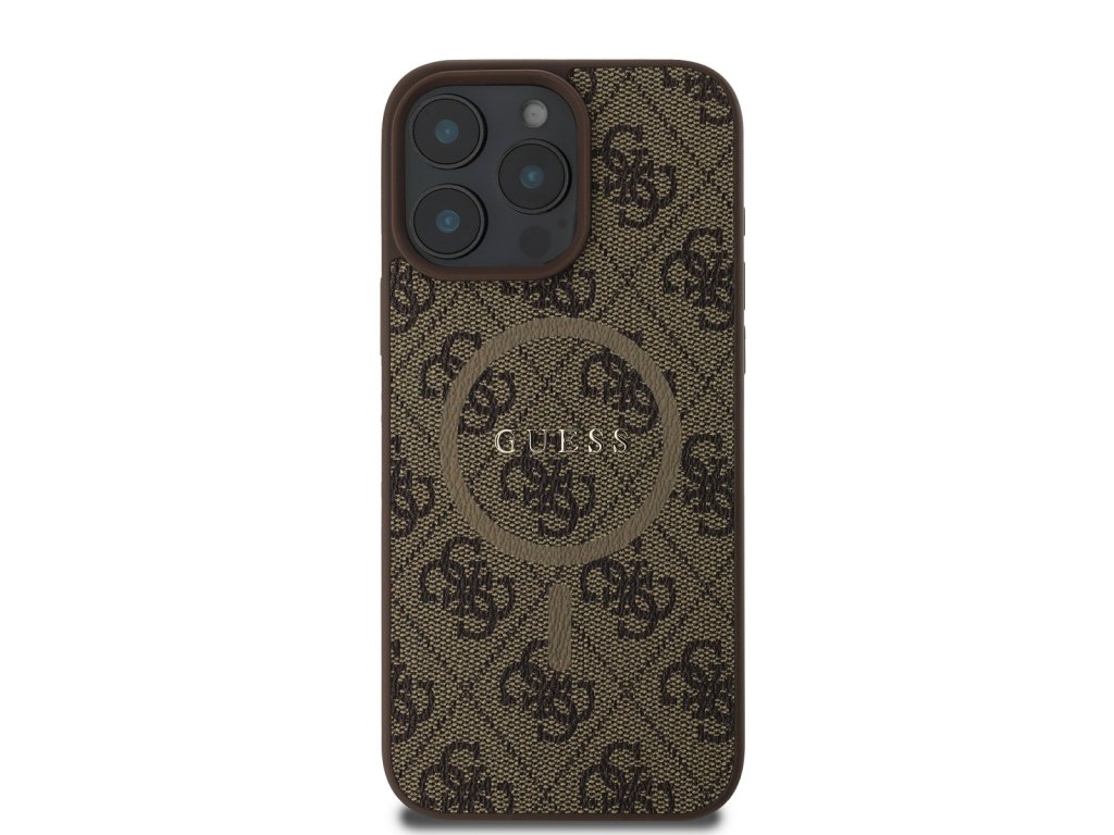 Guess PU Leather 4G Colored Ring MagSafe Zadní Kryt pro iPhone 16 Pro Max Brown