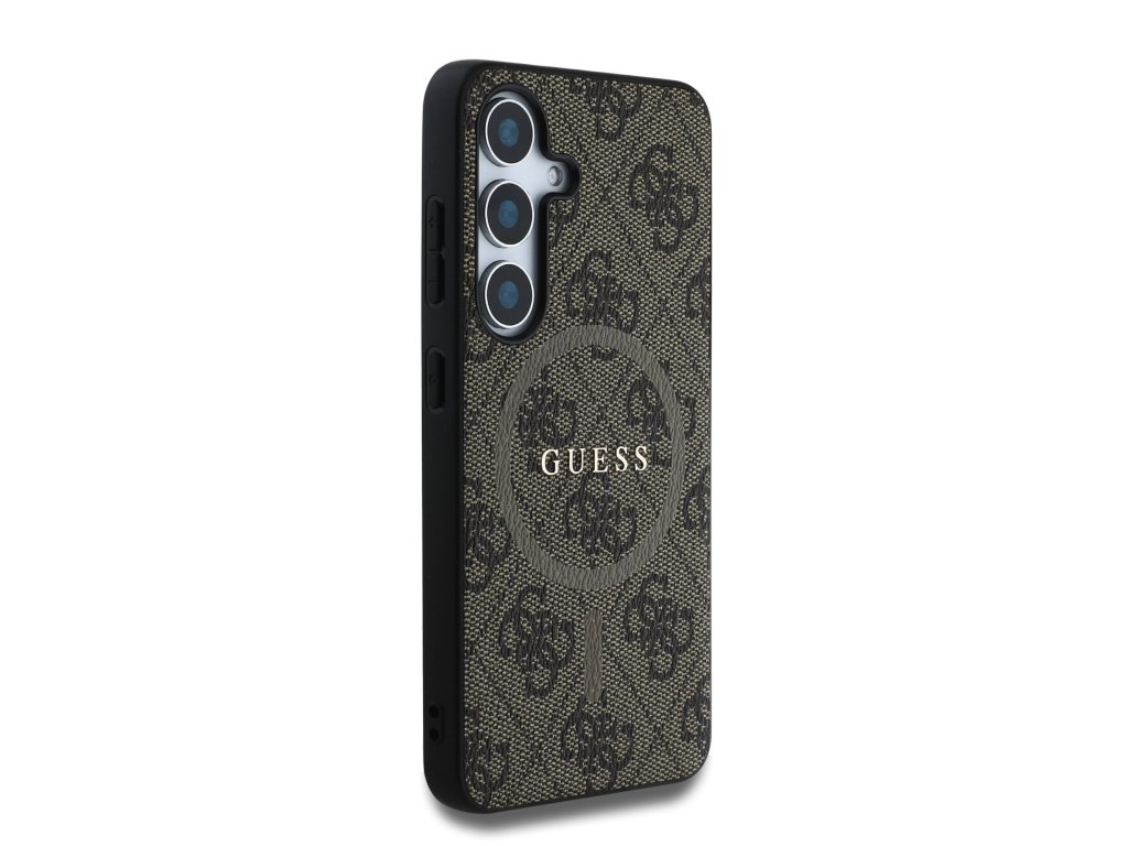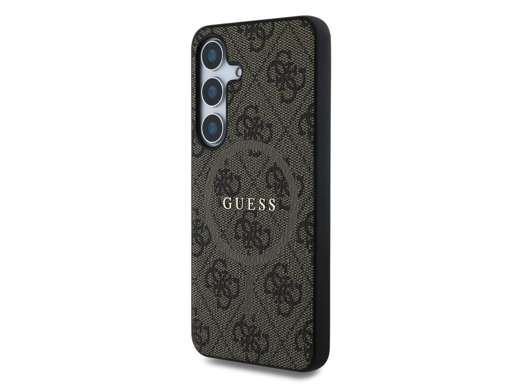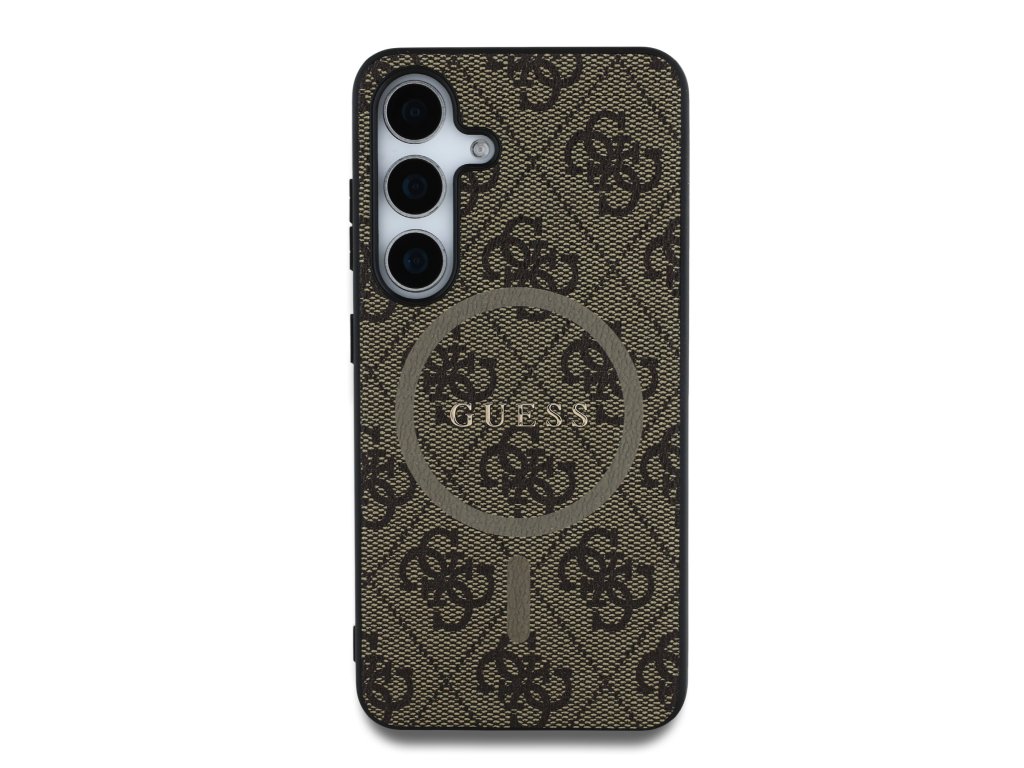 Guess PU Leather 4G Colored Ring MagSafe Zadní Kryt pro Samsung Galaxy S25 Brown