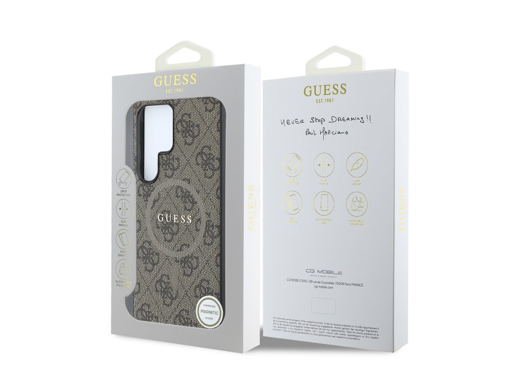 Guess PU Leather 4G Colored Ring MagSafe Zadní Kryt pro Samsung Galaxy S25 Ultra Brown