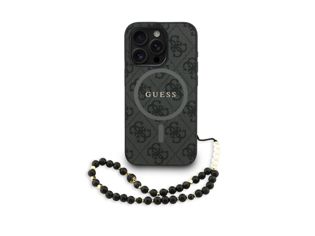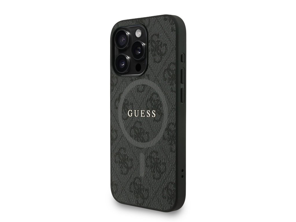 Guess PU Leather 4G Colored Ring Strap MagSafe Zadní Kryt pro iPhone 15 Pro Black