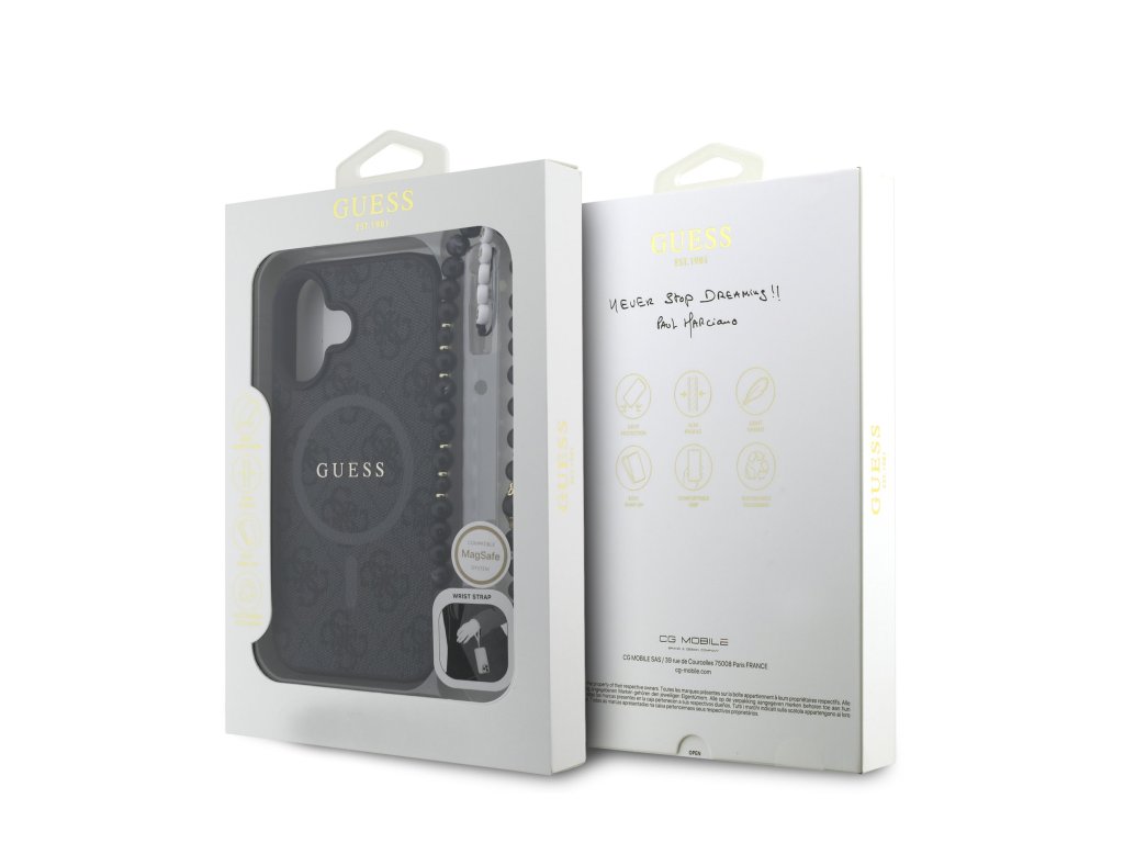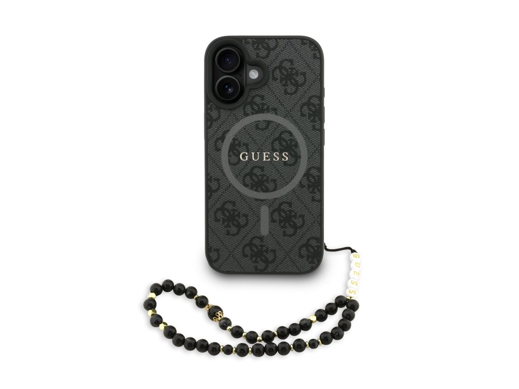 Guess PU Leather 4G Colored Ring Strap MagSafe Zadní Kryt pro iPhone 16 Black