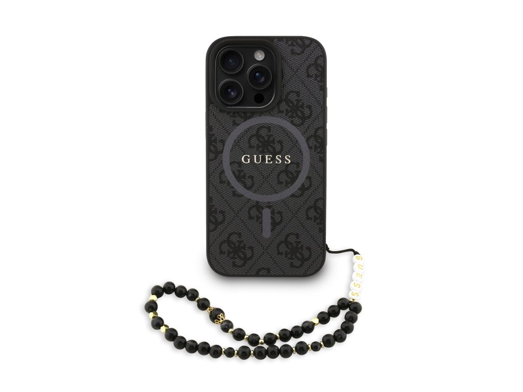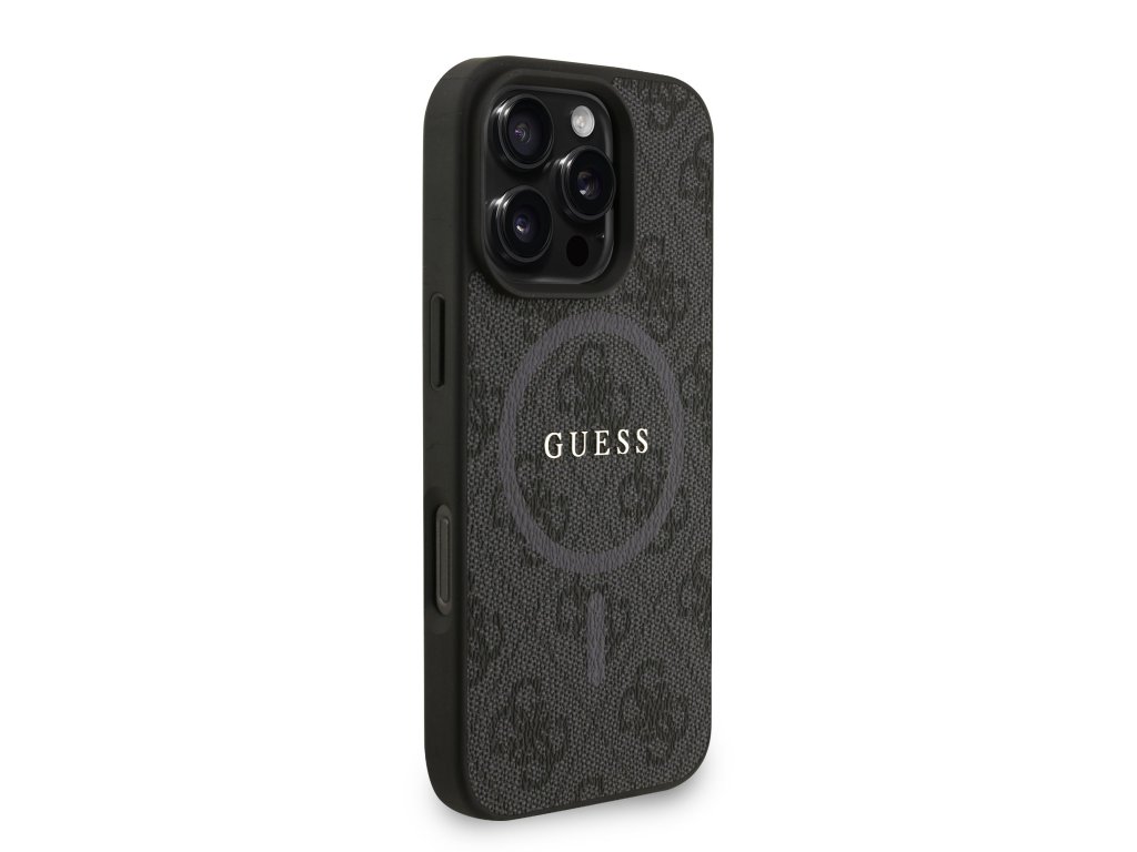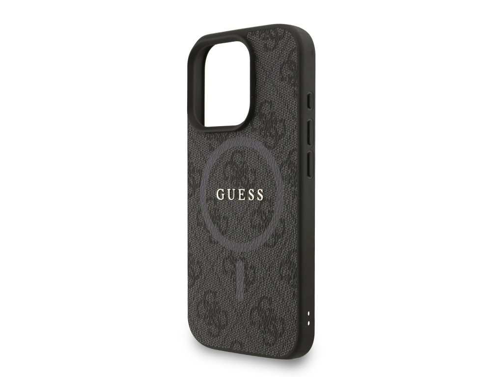 Guess PU Leather 4G Colored Ring Strap MagSafe Zadní Kryt pro iPhone 16 Pro Black