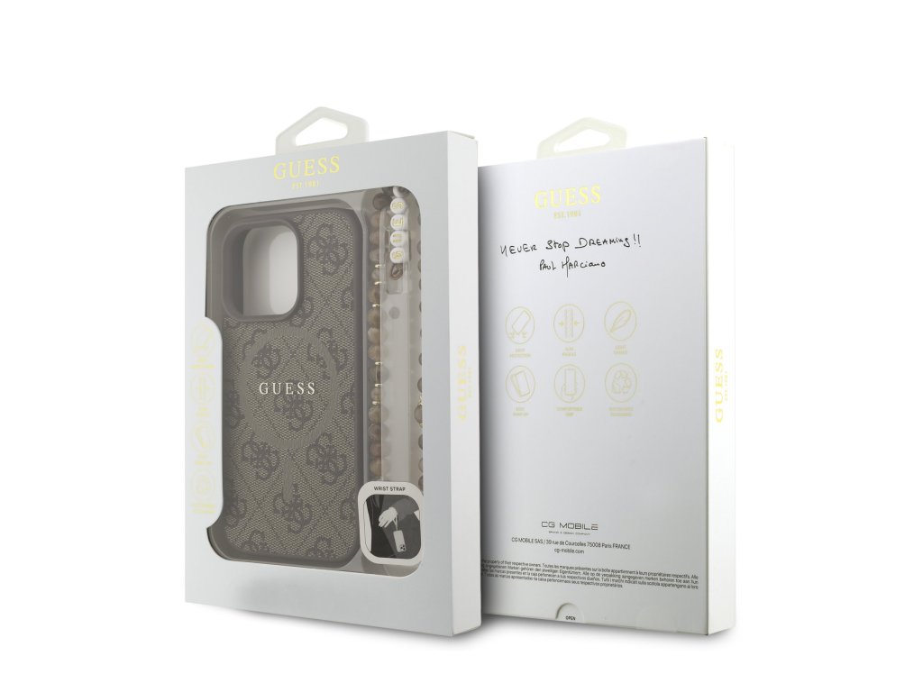 Guess PU Leather 4G Colored Ring Strap MagSafe Zadní Kryt pro iPhone 16 Pro Brown
