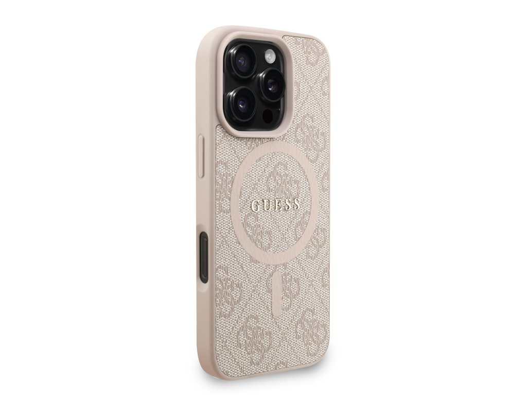 Guess PU Leather 4G Colored Ring Strap MagSafe Zadní Kryt pro iPhone 16 Pro Pink