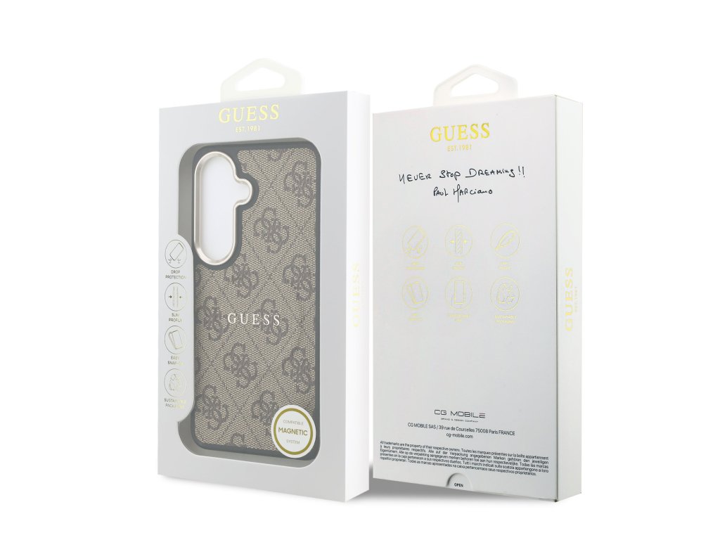 Guess PU Leather 4G Gold Frame Magnetic Zadní Kryt pro Samsung Galaxy S26+ Brown
