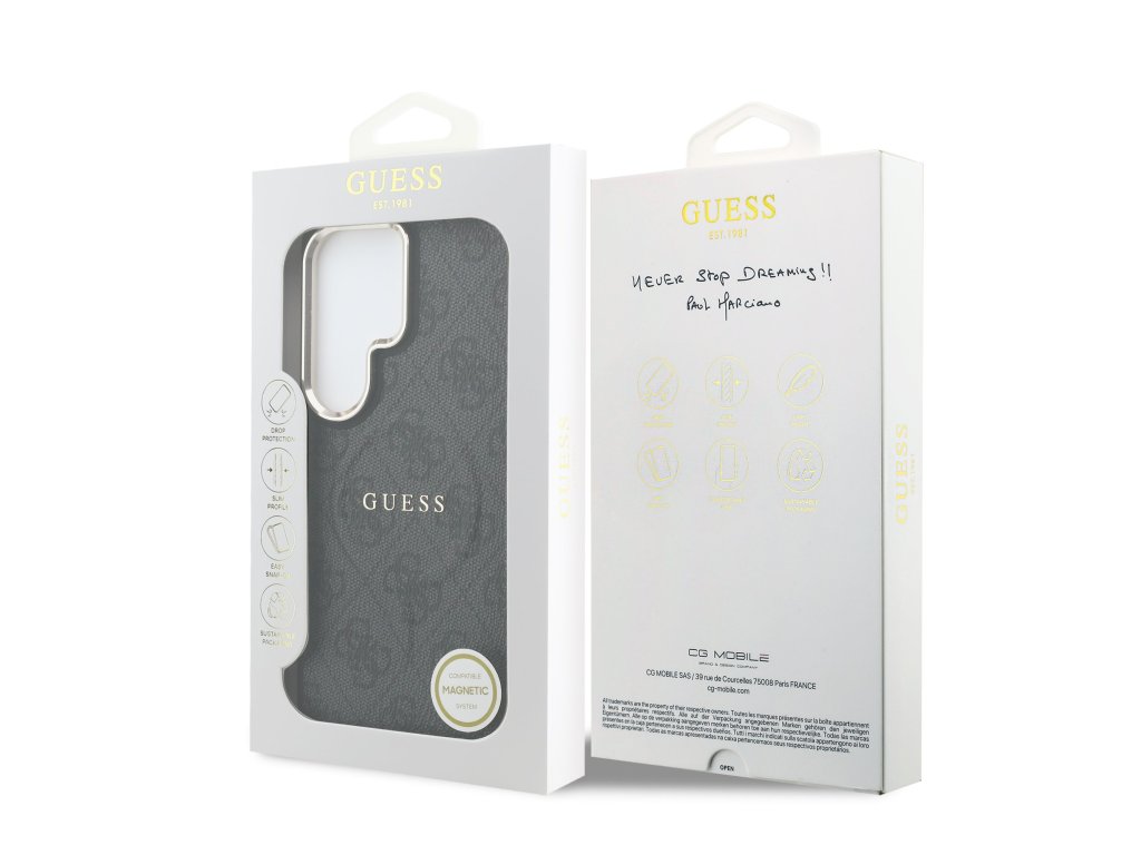 Guess PU Leather 4G Gold Frame Magnetic Zadní Kryt pro Samsung Galaxy S26 Ultra Black