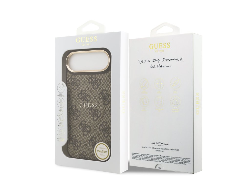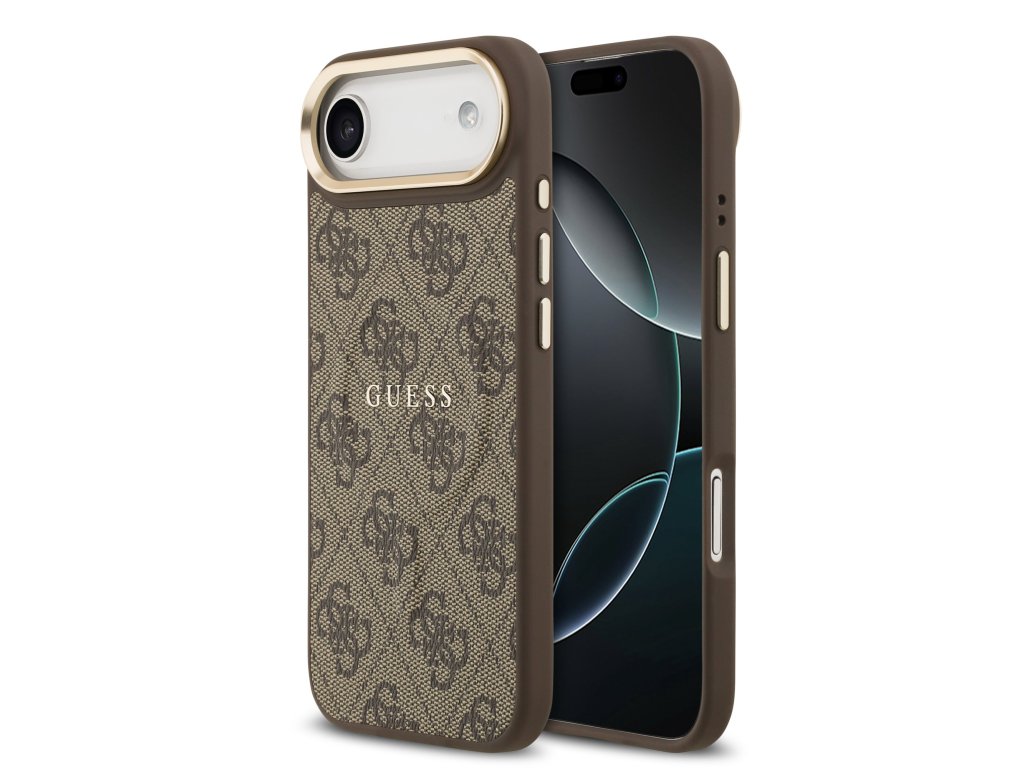 Guess PU Leather 4G Gold Frame MagSafe Zadní Kryt pro iPhone 17 Air Brown