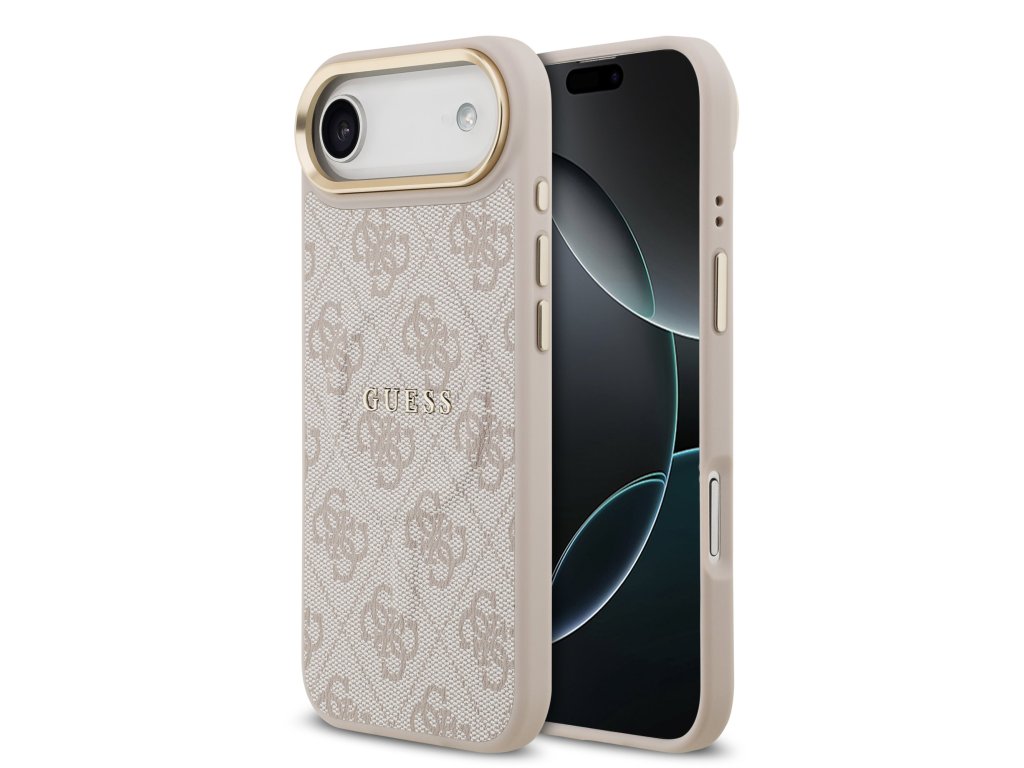 Guess PU Leather 4G Gold Frame MagSafe Zadní Kryt pro iPhone 17 Air Pink