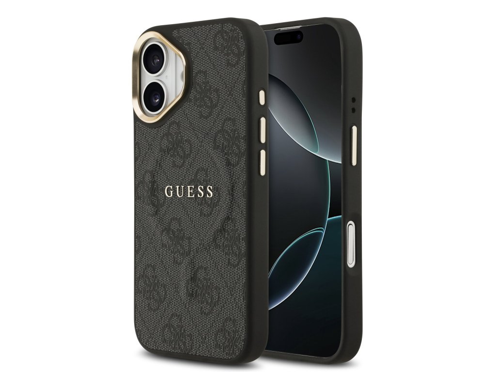 Guess PU Leather 4G Gold Frame MagSafe Zadní Kryt pro iPhone 17 Black