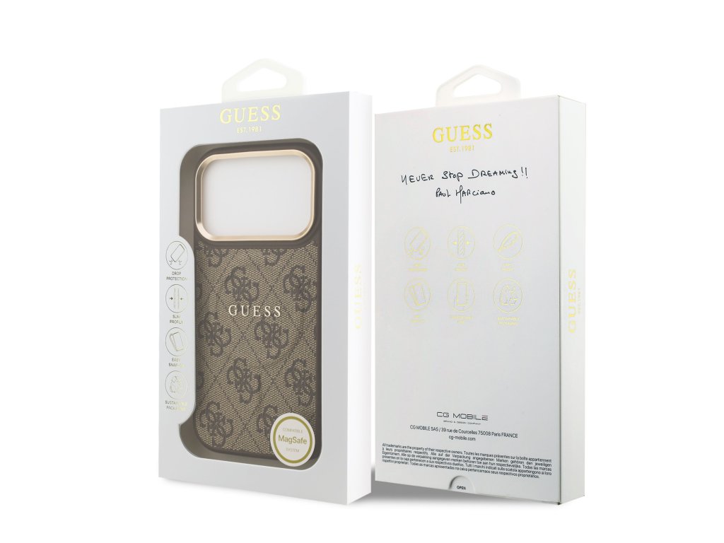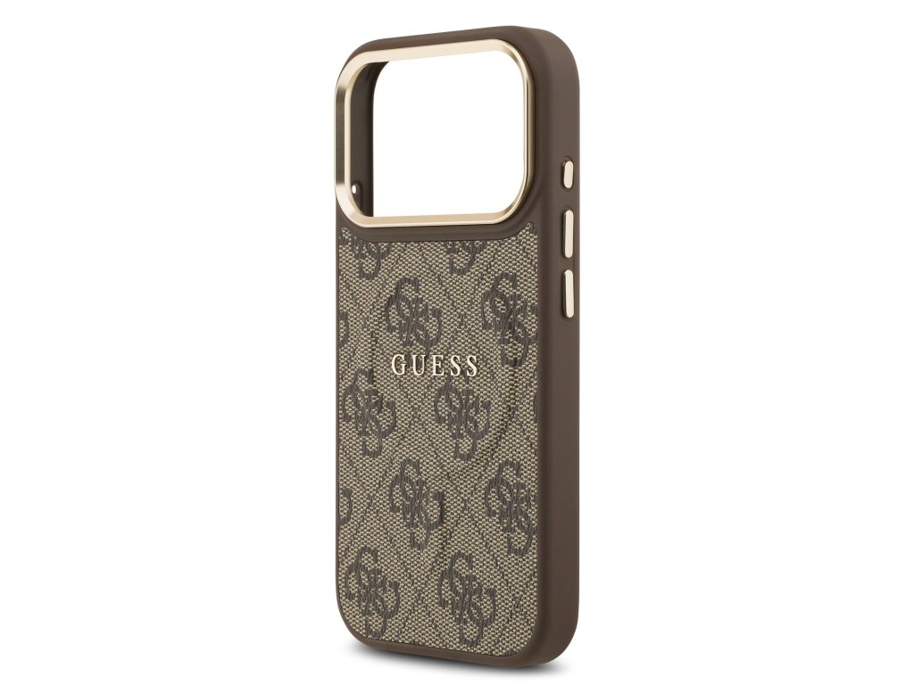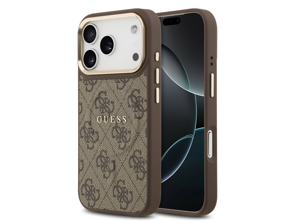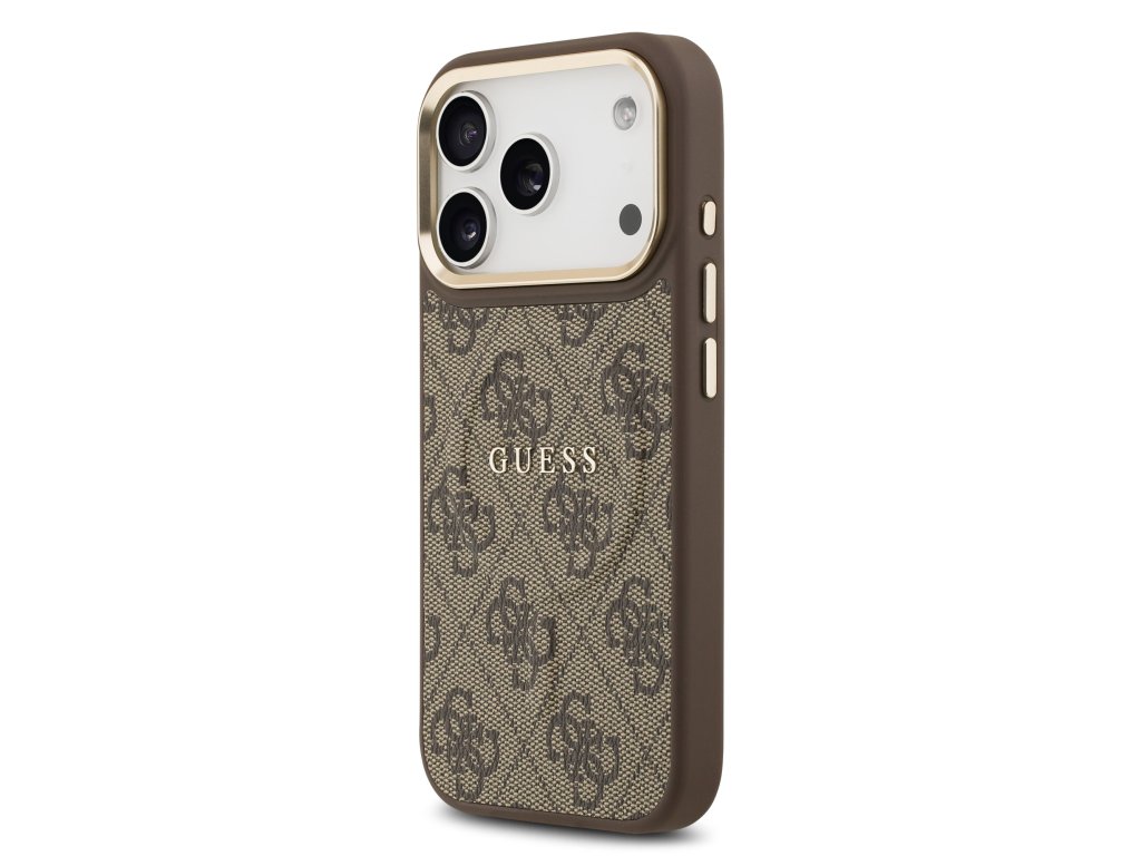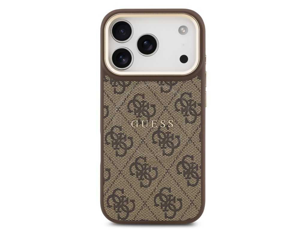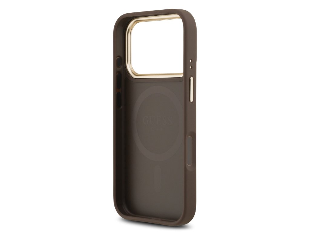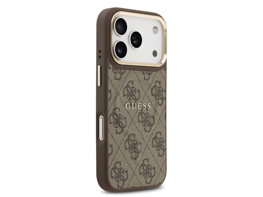 Guess PU Leather 4G Gold Frame MagSafe Zadní Kryt pro iPhone 17 Pro Brown