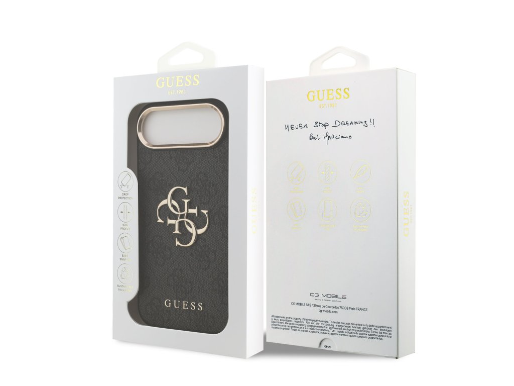 Guess PU Leather 4G Metal Logo Gold Frame MagSafe Zadní Kryt pro iPhone 17 Air Black