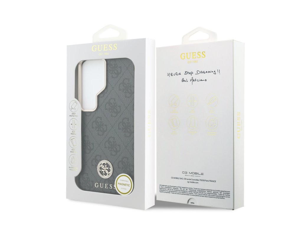 Guess PU Leather 4G Strass Logo Gold Frame Magnetic Zadní Kryt pro Samsung Galaxy S26 Ultra Black
