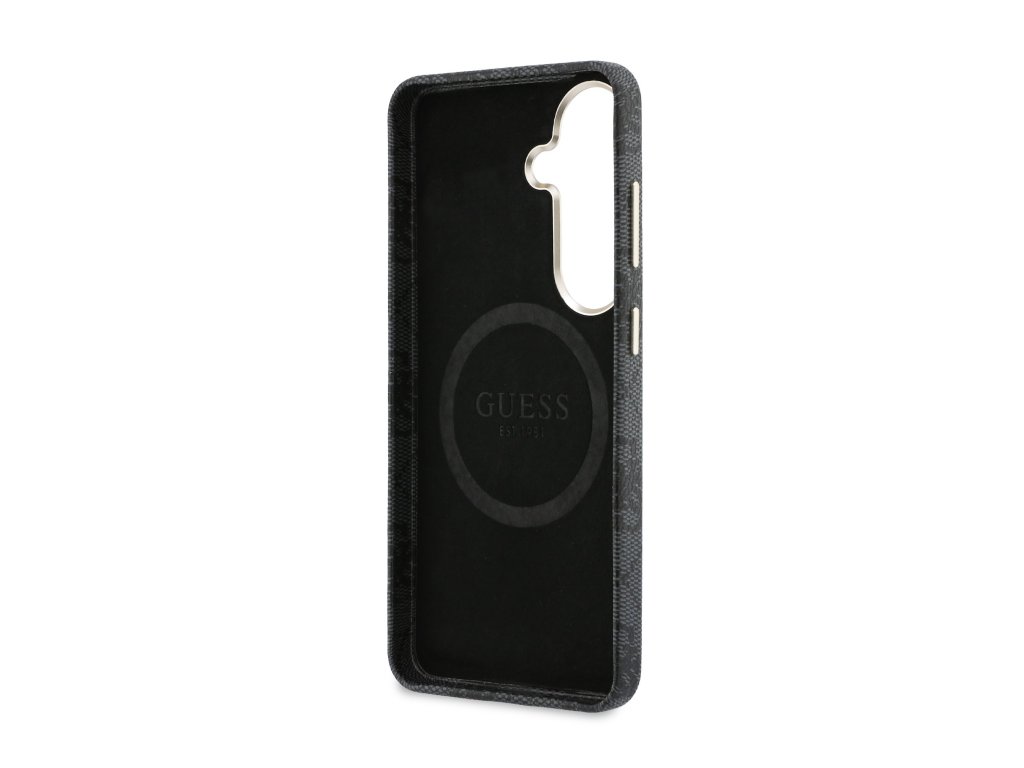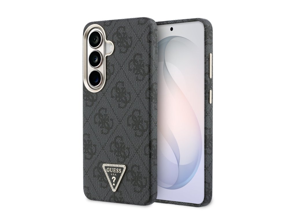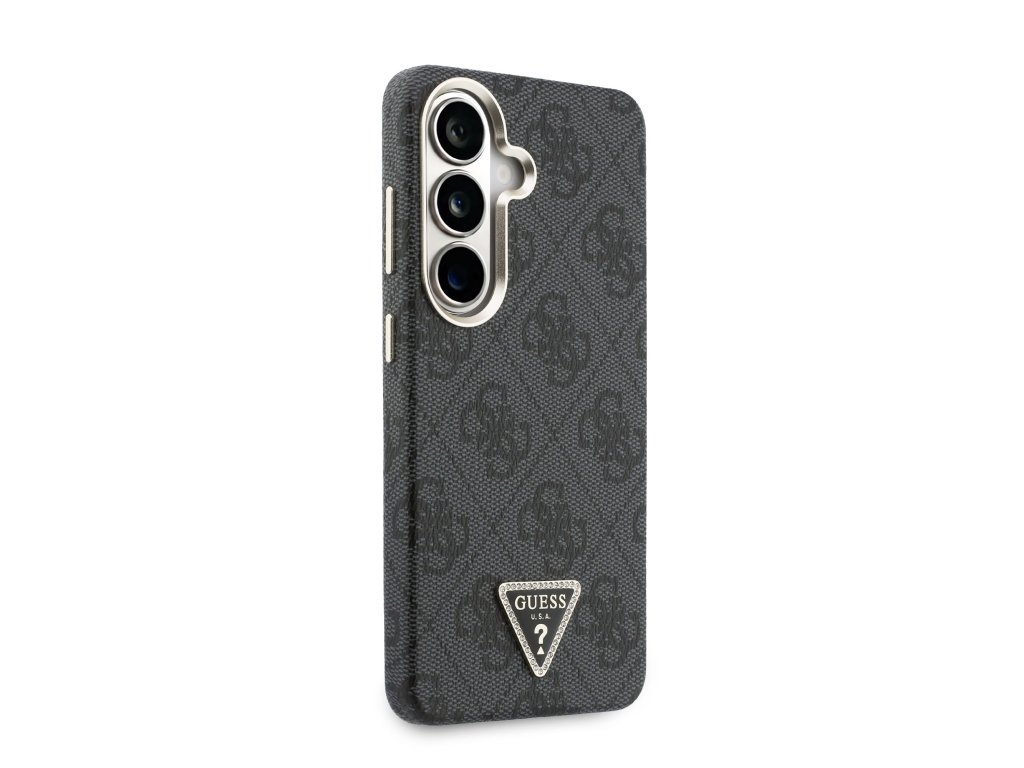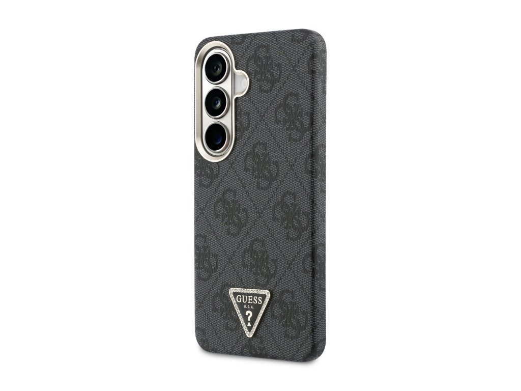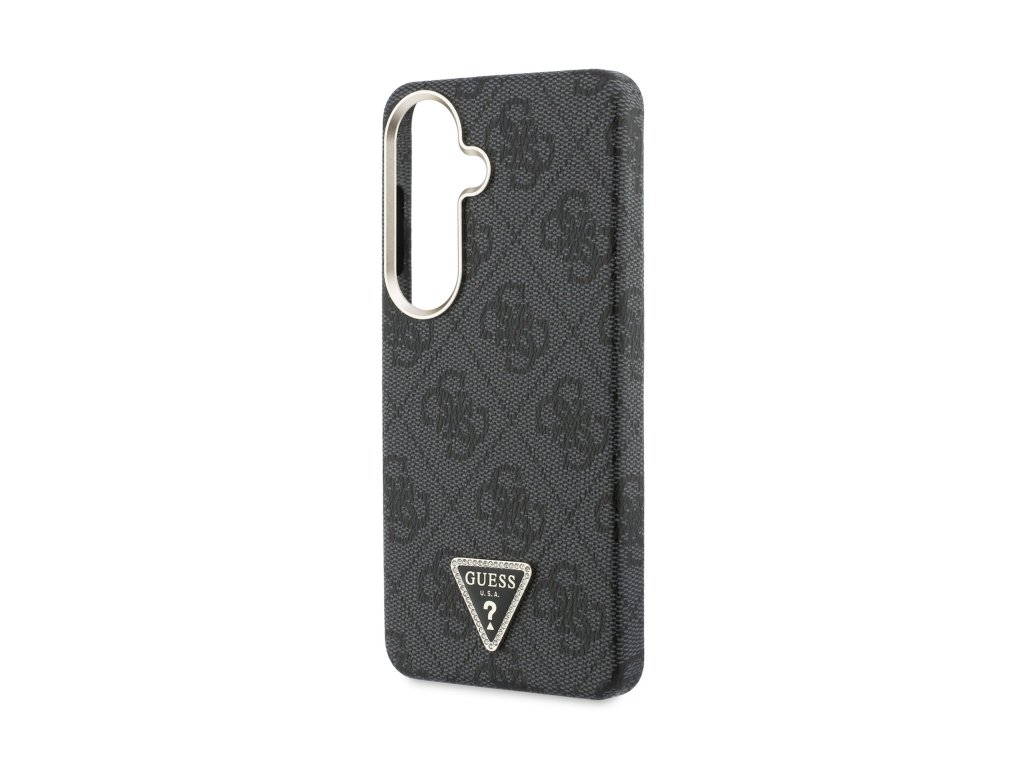 Guess PU Leather 4G Strass Triangle Logo Gold Frame Magnetic Zadní Kryt pro Samsung Galaxy S26 Black
