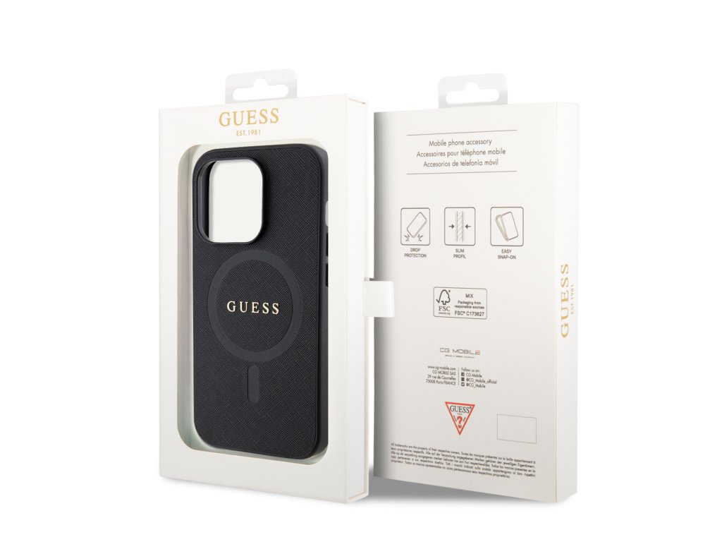 Guess PU Saffiano MagSafe Zadní Kryt pro iPhone 15 Pro Max Black