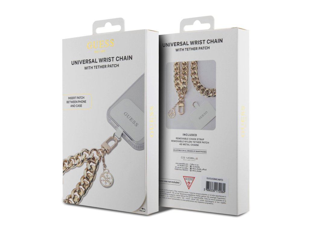 Guess Univerzální Popruh na Ruku 4G Charm je ideálním doplňkem pro ty, kteří hledají spojení elegance, stylu a funkčnosti. Je kompatibilní s většinou smartphonů a díky univerzálnímu použití a snadné instalaci ho můžete využít v různých situacích. Tento popruh vám umožní nosit své zařízení bezpečně a zároveň vypadat skvěle.Robustní řetěz s velkými články vypadá elegantně a současně je velmi praktický. Zlaté detaily, jako je karabinka a přívěsek s logem Guess, dodávají popruhu sofistikovaný nádech. Snadno ho připojíte k vašemu telefonu a můžete ho začít okamžitě používat.