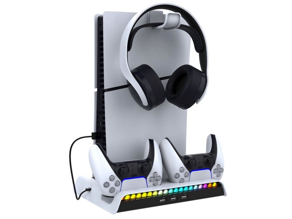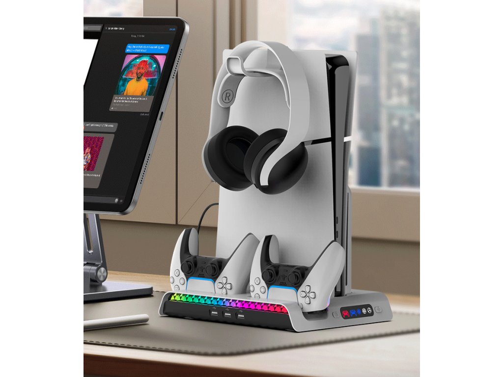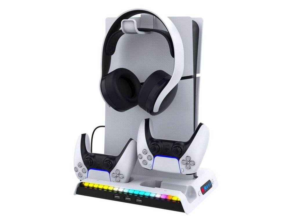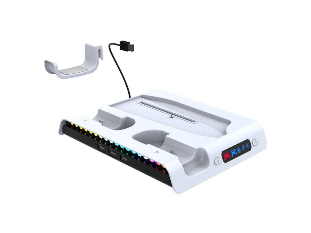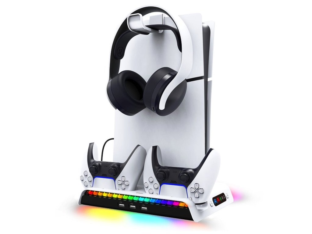 iPega P5S006 Multifunkční Nabíjecí RGB Stojan s Chlazením pro PS5 Slim White