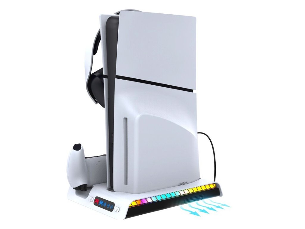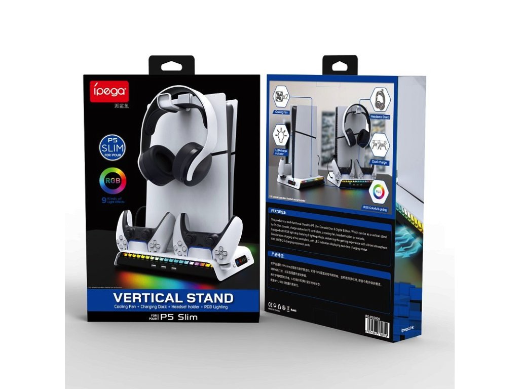 iPega P5S006 Multifunkční nabíjecí stojan určený pro Playstation 5 Slim.Praktický stojan s integrovanými ventilátory pro vaší konzoli pro to nejlepší chlazení během dlouhých hodin hraní.