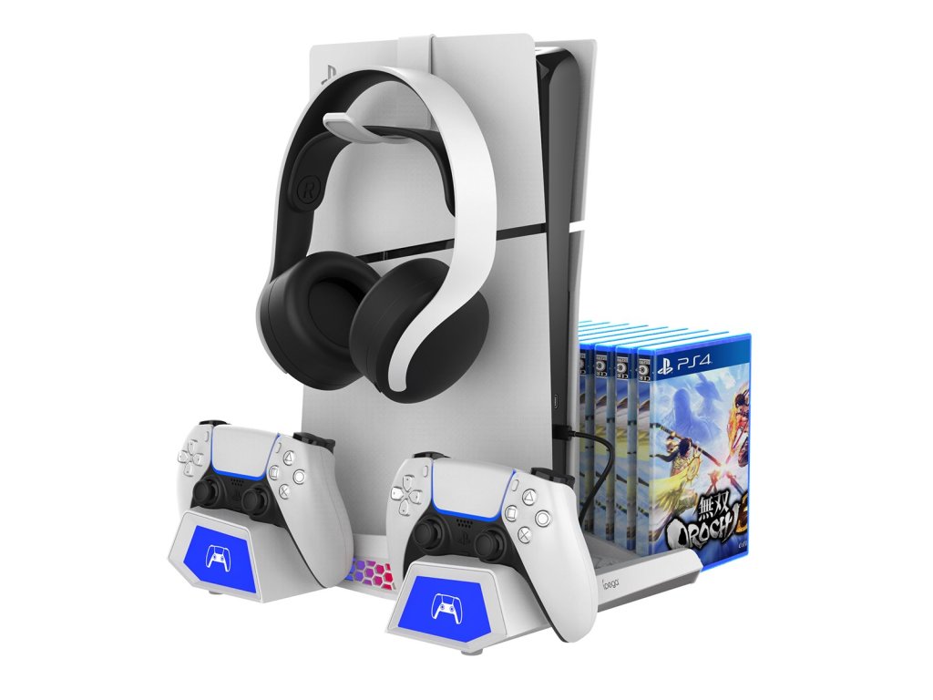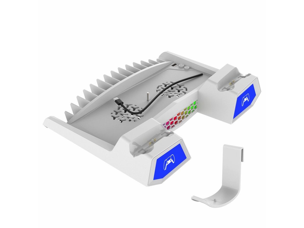 iPega P5S023 Multifunkční Nabíjecí RGB Stojan s Chlazením pro PS5/PS5 Slim White (Pošk. Balení)