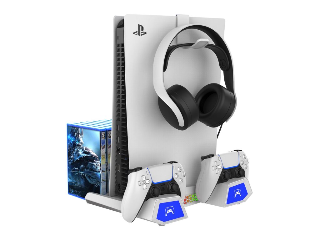 iPega P5S023 Multifunkční nabíjecí stojan s chlazením určený pro Playstation 5/5 Slim.Praktický stojan s integrovanými ventilátory pro vaší konzoli pro to nejlepší chlazení během dlouhých hodin hraní.