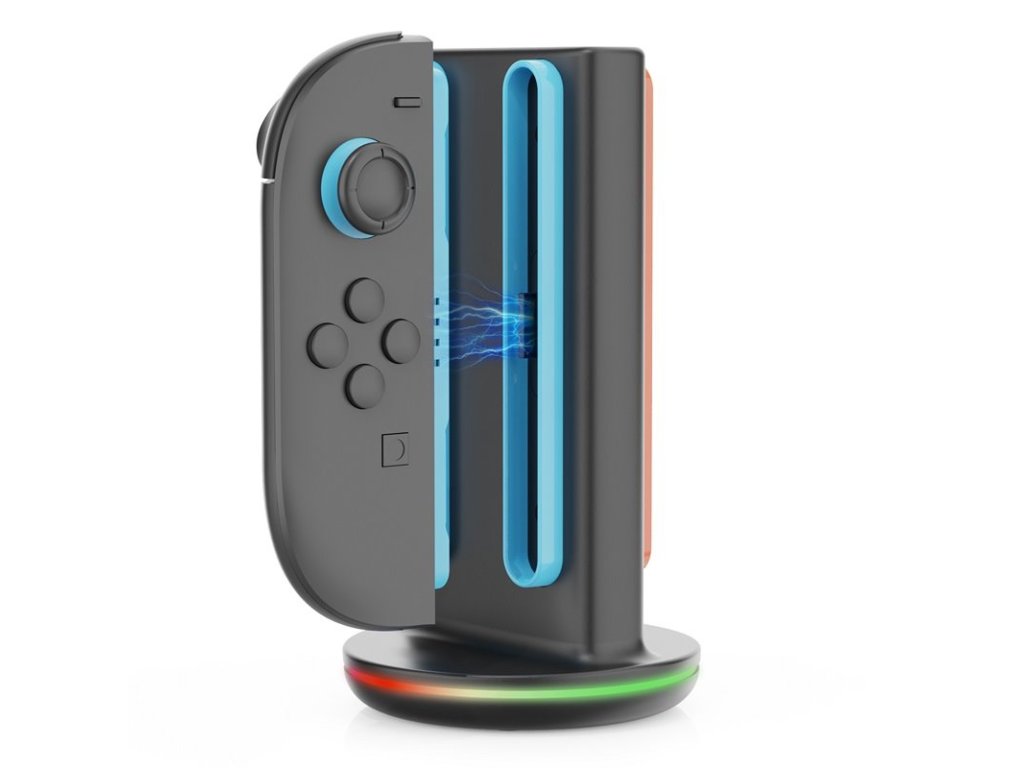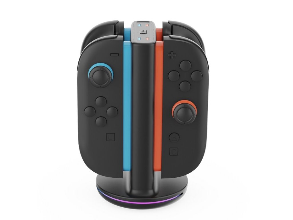 Speciálně navržená dobíjecí stanice pro ovladače Nintendo Switch 2 JoyCon.Tato nabíjecí stanice umožňuje současné nabíjení až čtyř JoyCon ovladačů najednou.