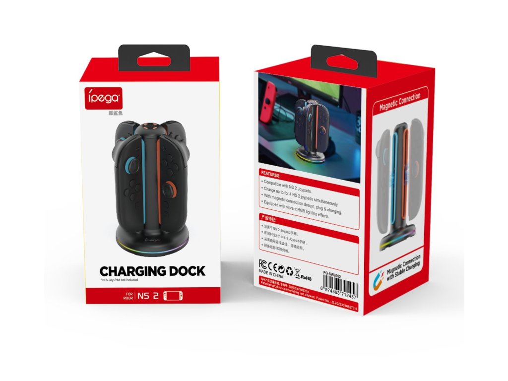 iPega SW2052 Nabíjecí stanice pro JoyCon ovladače Nintendo Switch 2 - Efektivní nabíjení ve stylovém provedeníUdržujte své JoyCon ovladače vždy připravené k akci s touto nabíjecí stanicí, speciálně navrženou pro Nintendo Switch 2.