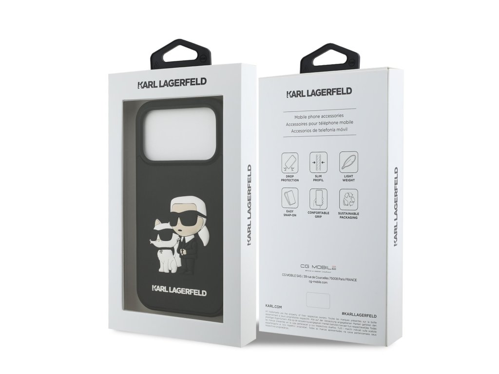 Karl Lagerfeld 3D Rubber Karl and Choupette Zadní Kryt pro iPhone 17 Pro Black