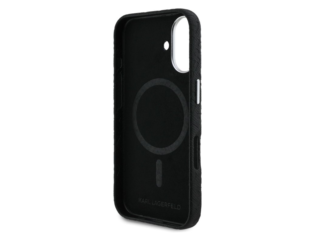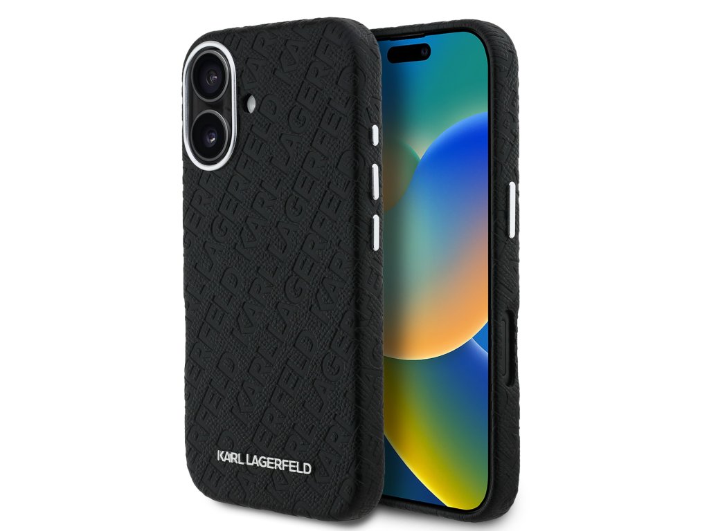 Karl Lagerfeld Grained PU Repeated Logo MagSafe Zadní Kryt pro iPhone 16 Black