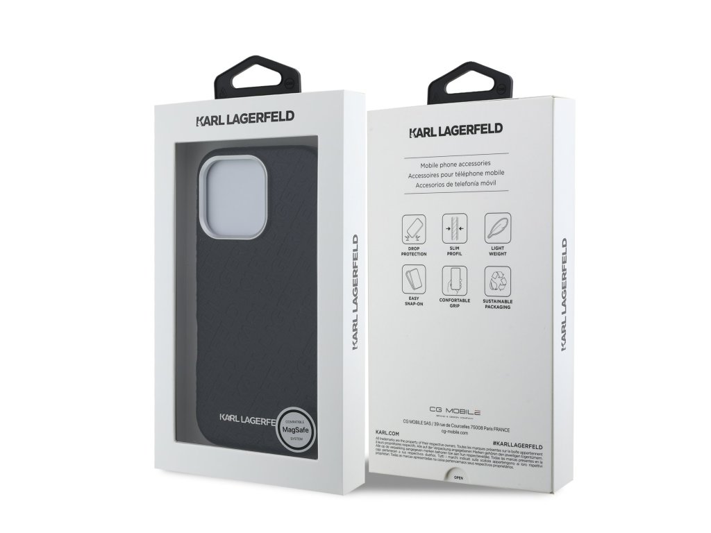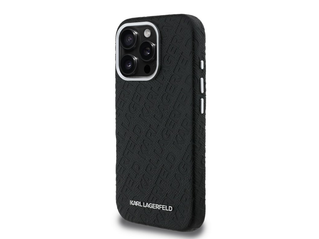 Karl Lagerfeld Grained PU Repeated Logo MagSafe Zadní Kryt pro iPhone 16 Pro Black