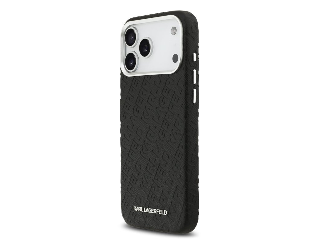 Karl Lagerfeld Grained PU Repeated Logo MagSafe Zadní Kryt pro iPhone 17 Pro Max Black