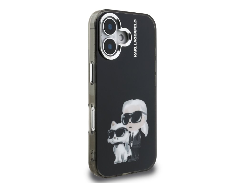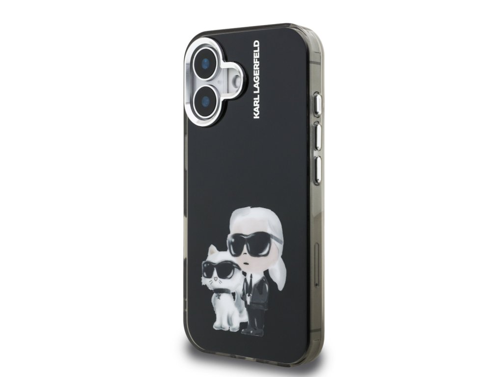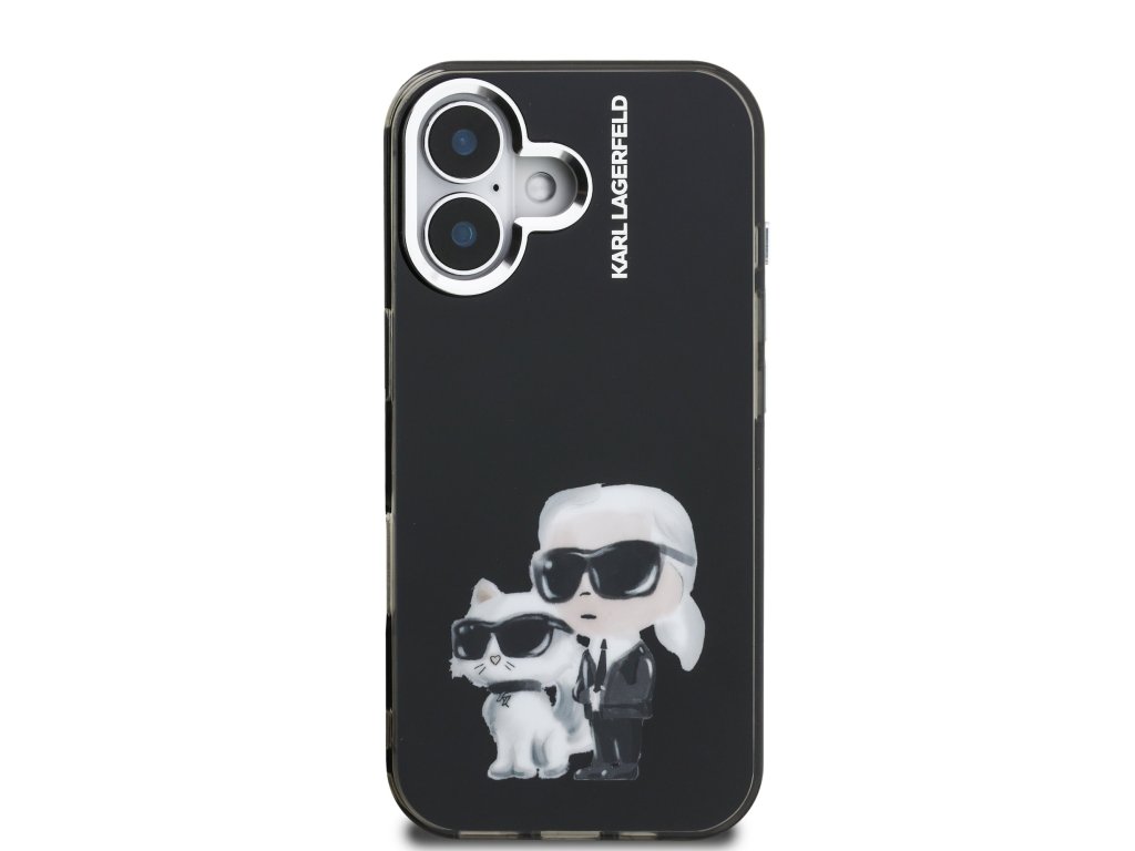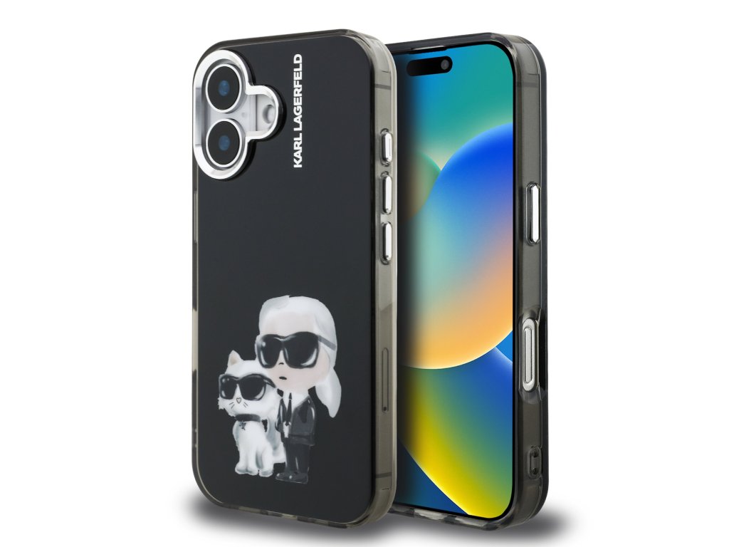 Karl Lagerfeld IML Aquarelle Karl and Choupette Zadní Kryt pro iPhone 16 Black