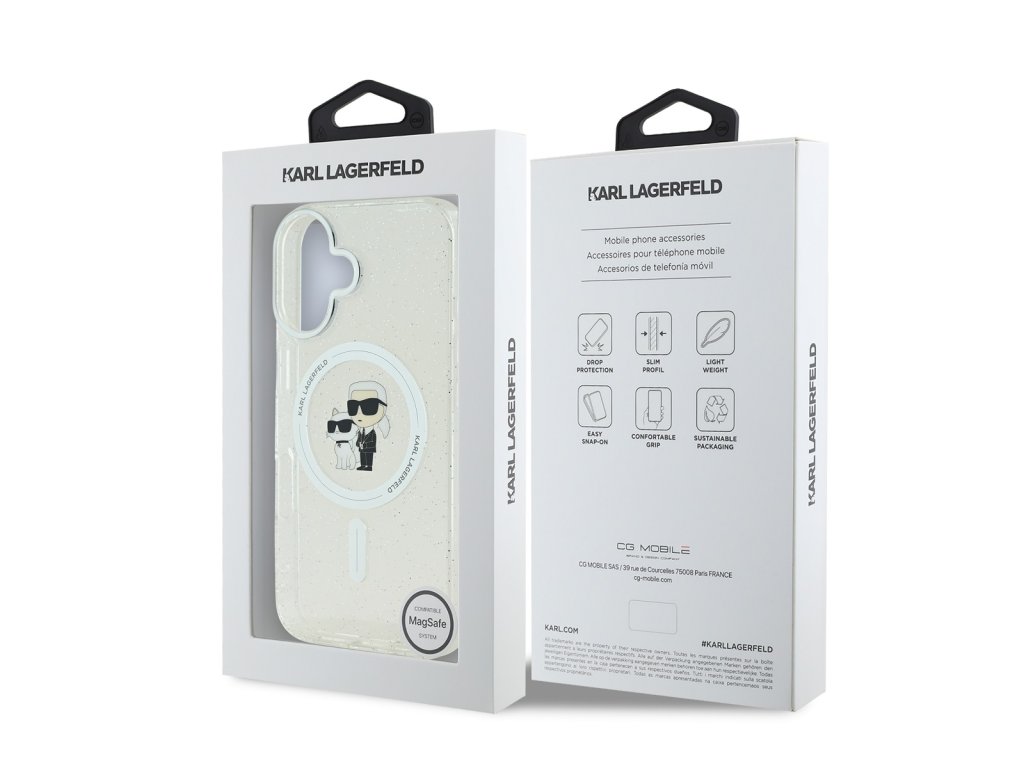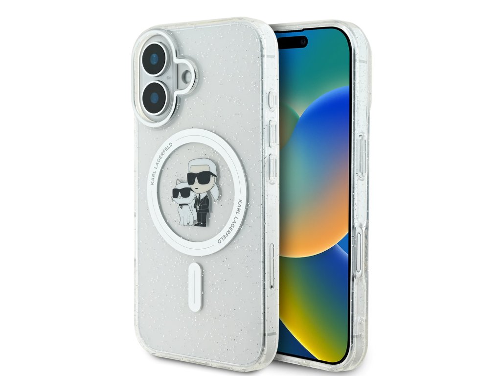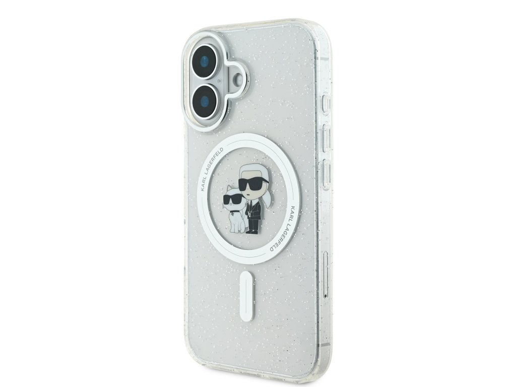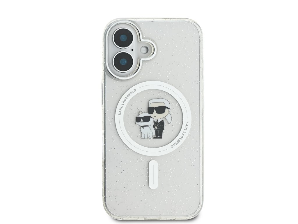 Karl Lagerfeld IML Glitter Karl and Choupette MagSafe Zadní Kryt pro iPhone 16 Transparent