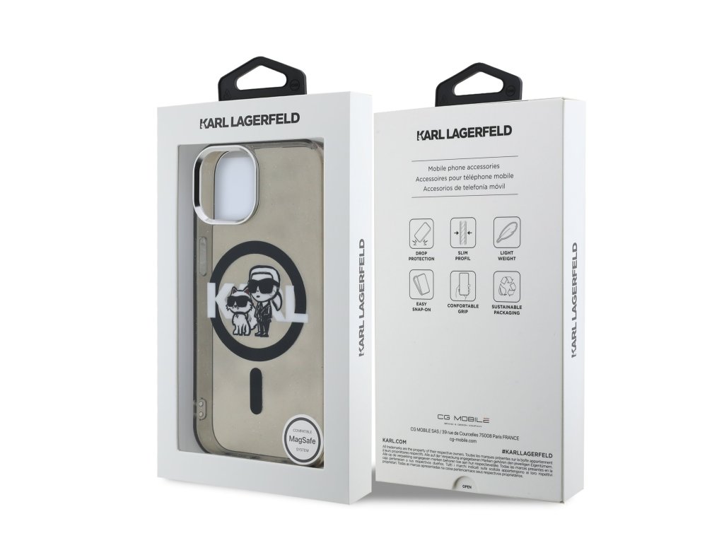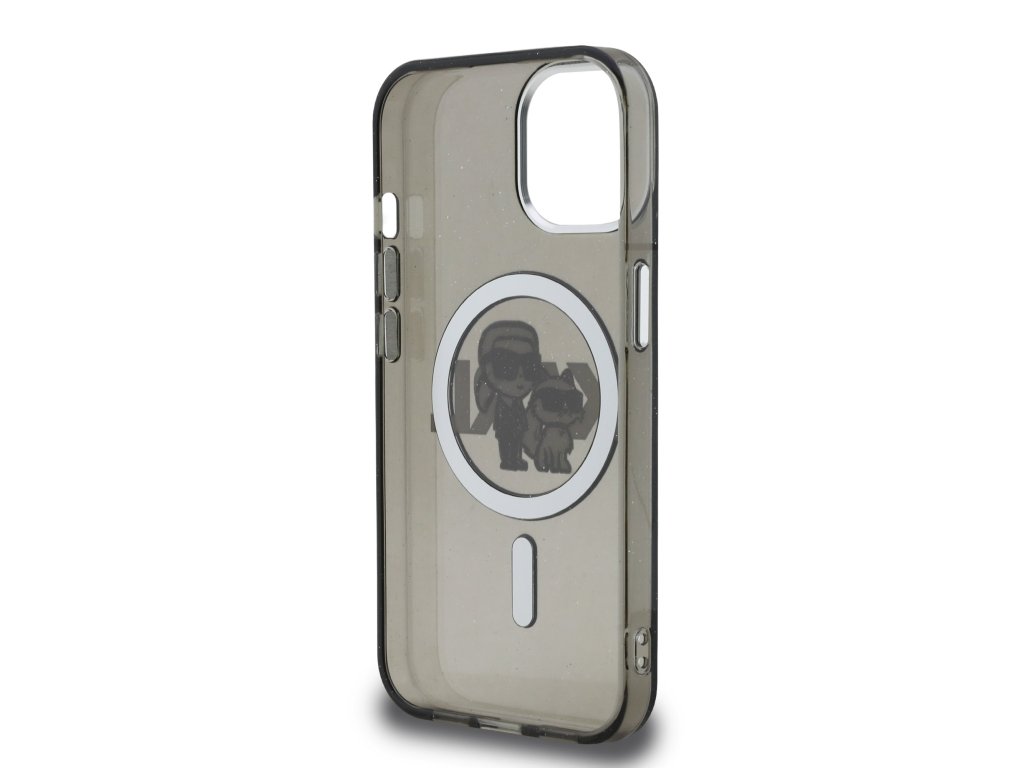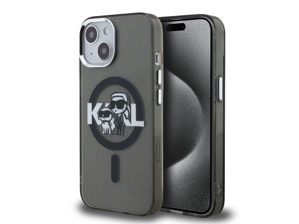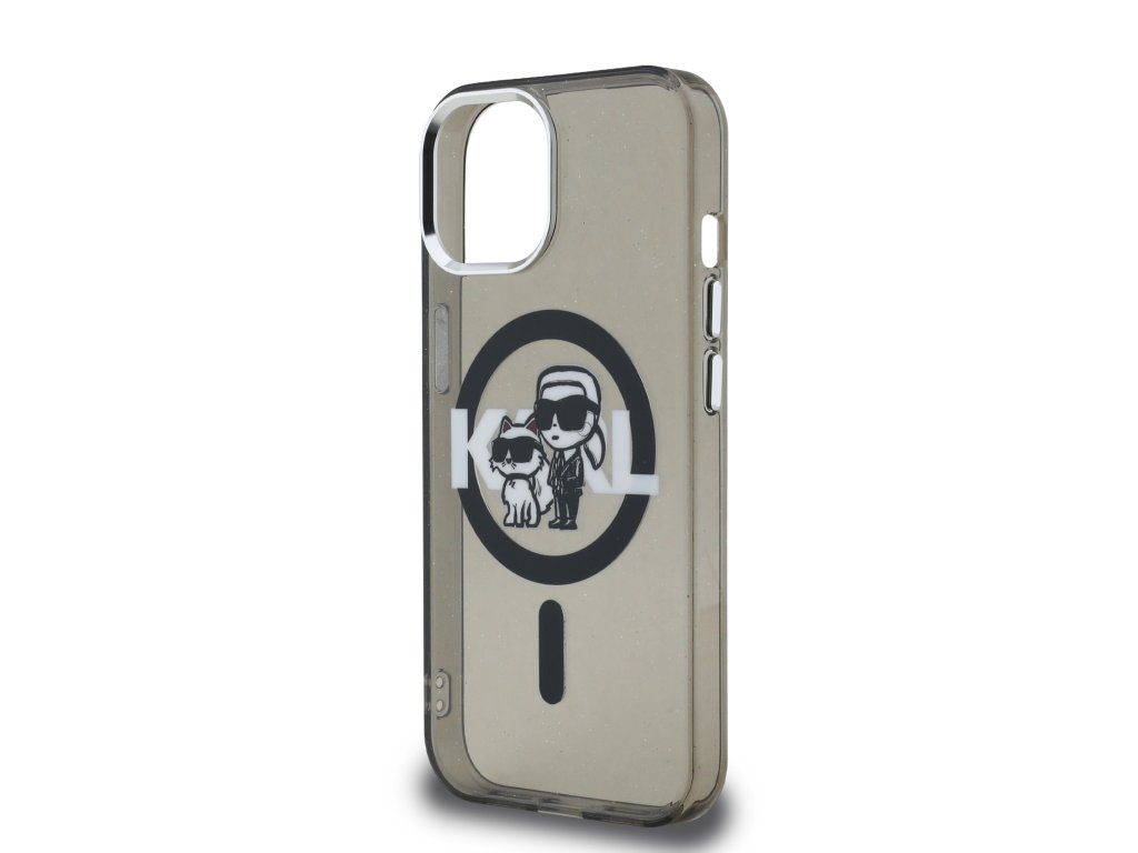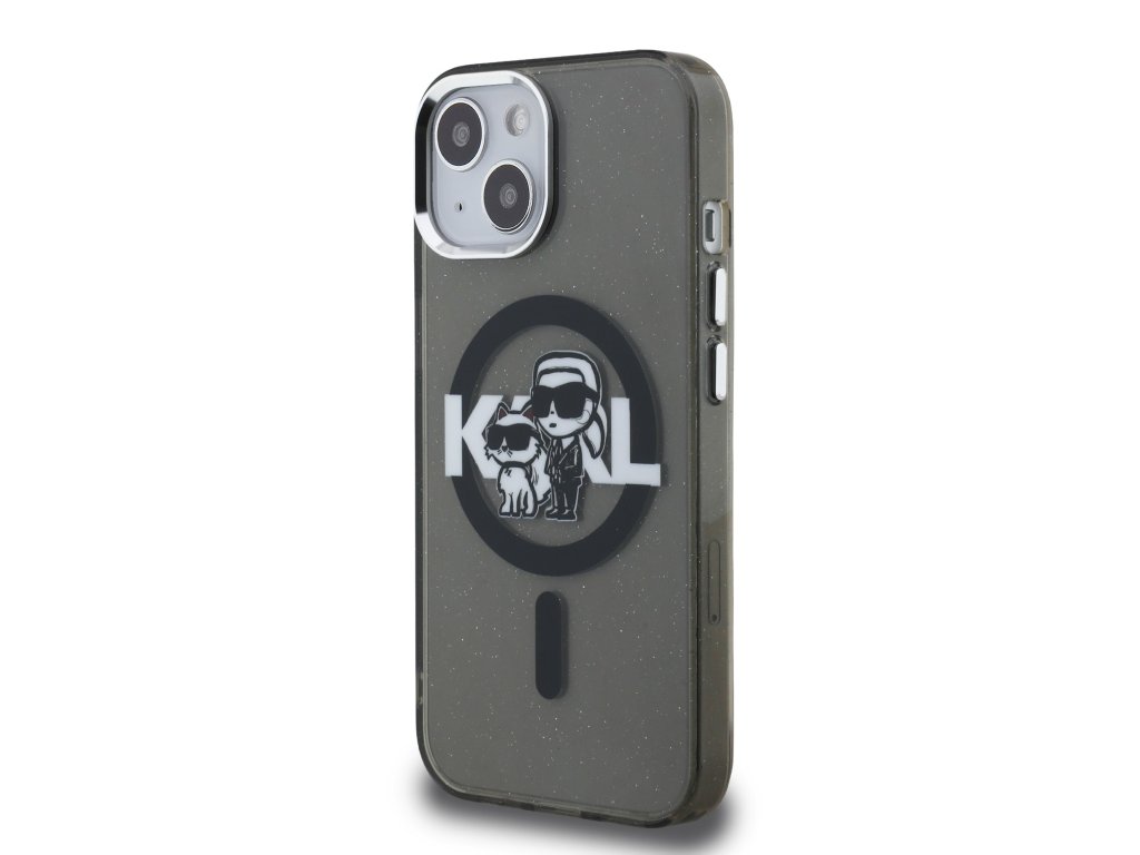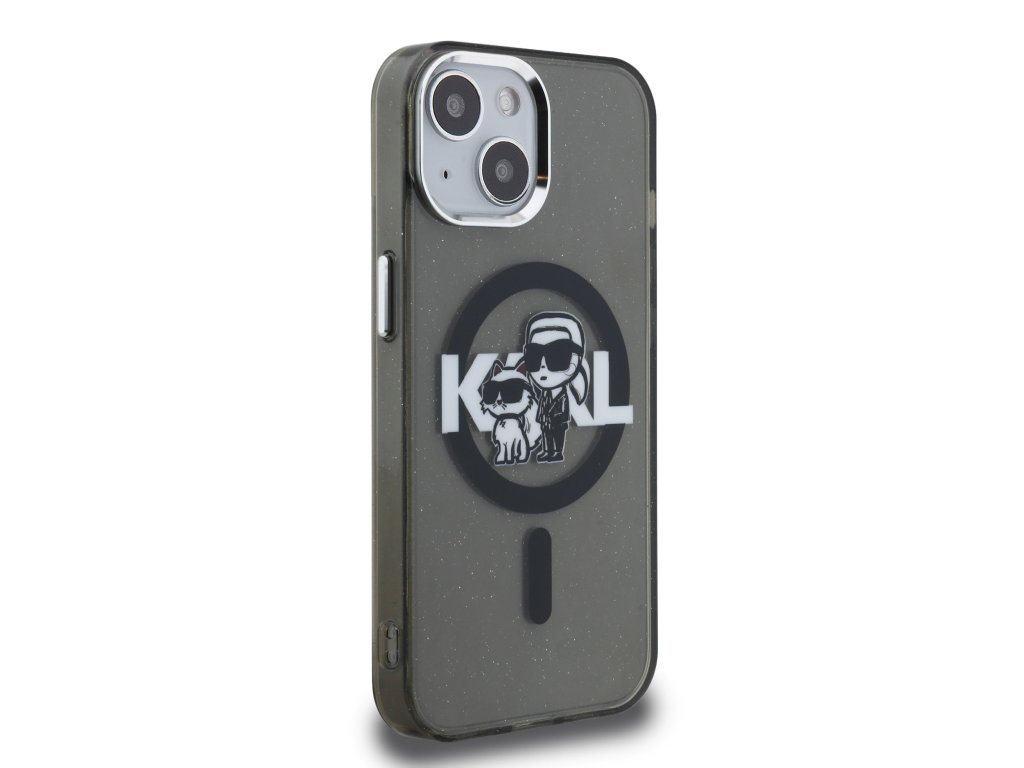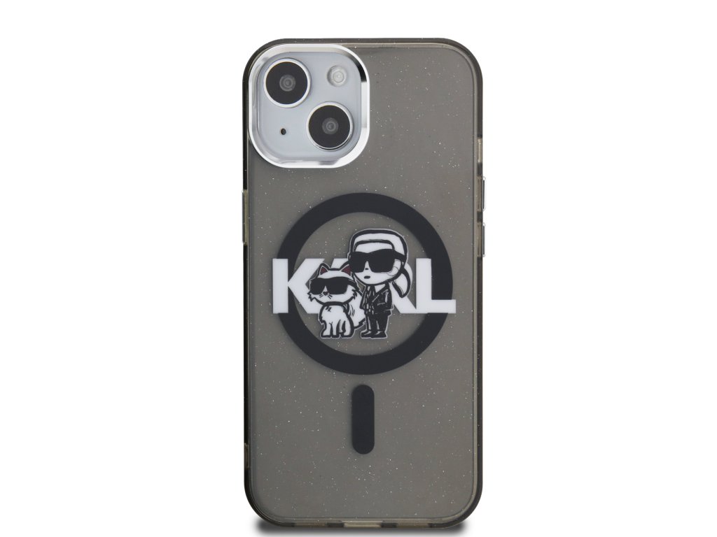 Karl Lagerfeld IML Glitter Karl and Choupette Sketch MagSafe Zadní Kryt pro iPhone 15 Black