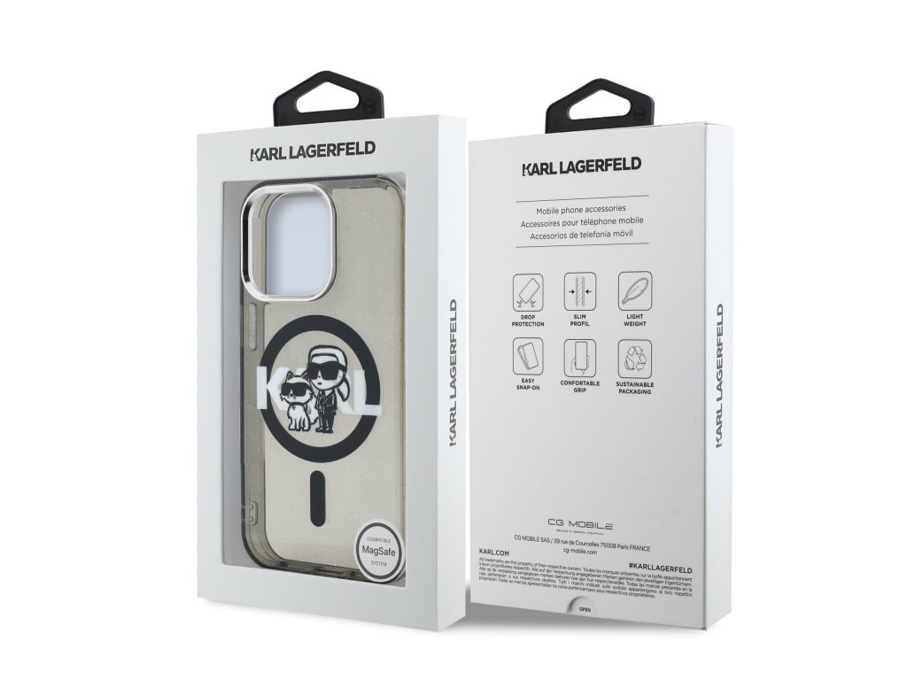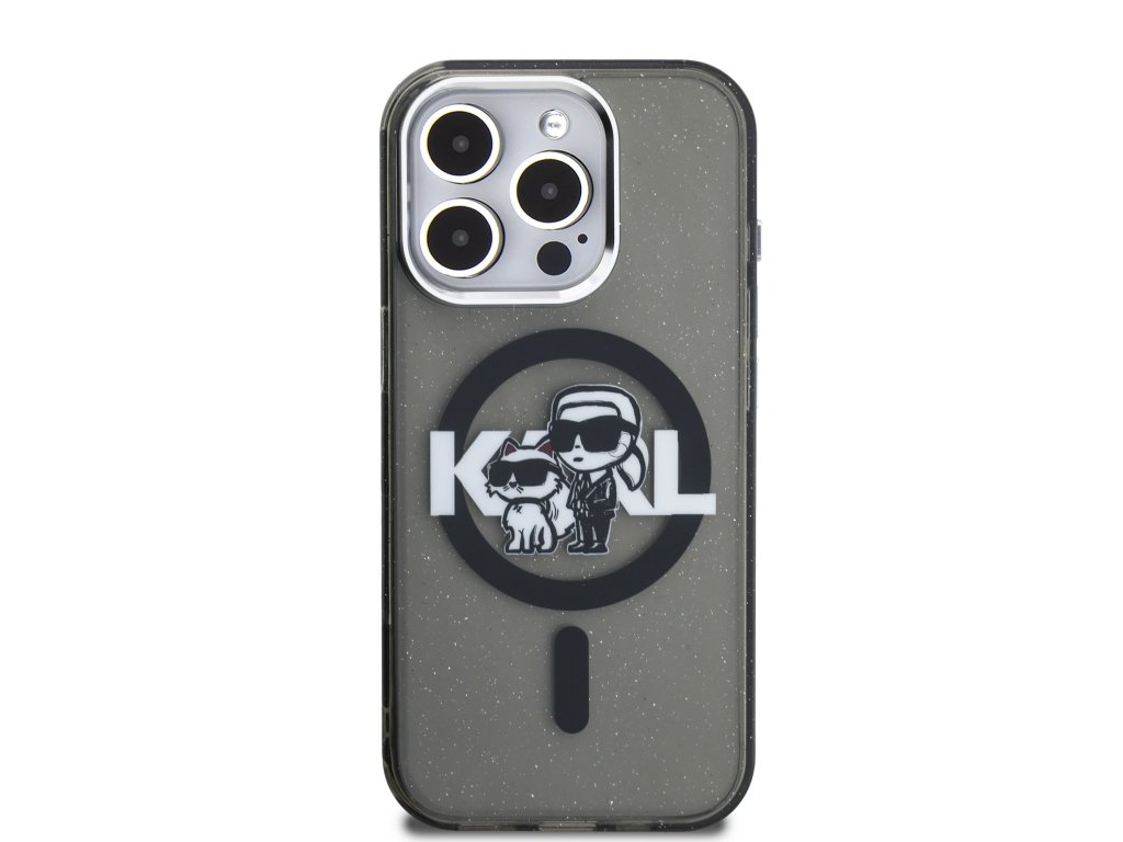 Karl Lagerfeld IML Glitter Karl and Choupette Sketch MagSafe Zadní Kryt pro iPhone 15 Pro Max Black