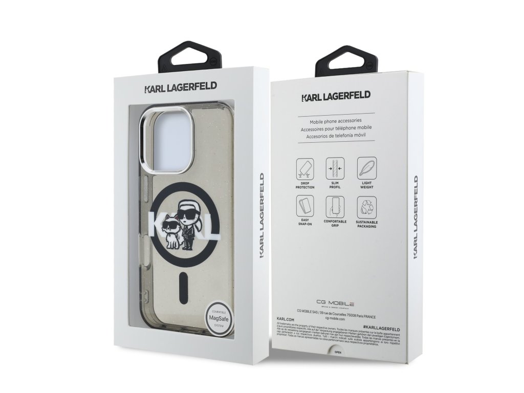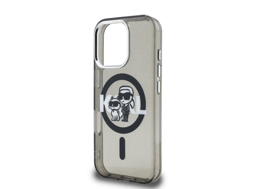 Karl Lagerfeld IML Glitter Karl and Choupette Sketch MagSafe Zadní Kryt pro iPhone 16 Pro Black