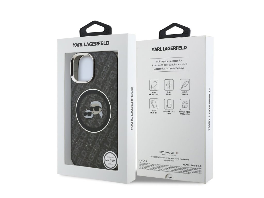 Karl Lagerfeld IML K&CH Heads Repeated Logo MagSafe Zadní Kryt pro iPhone 15 Black
