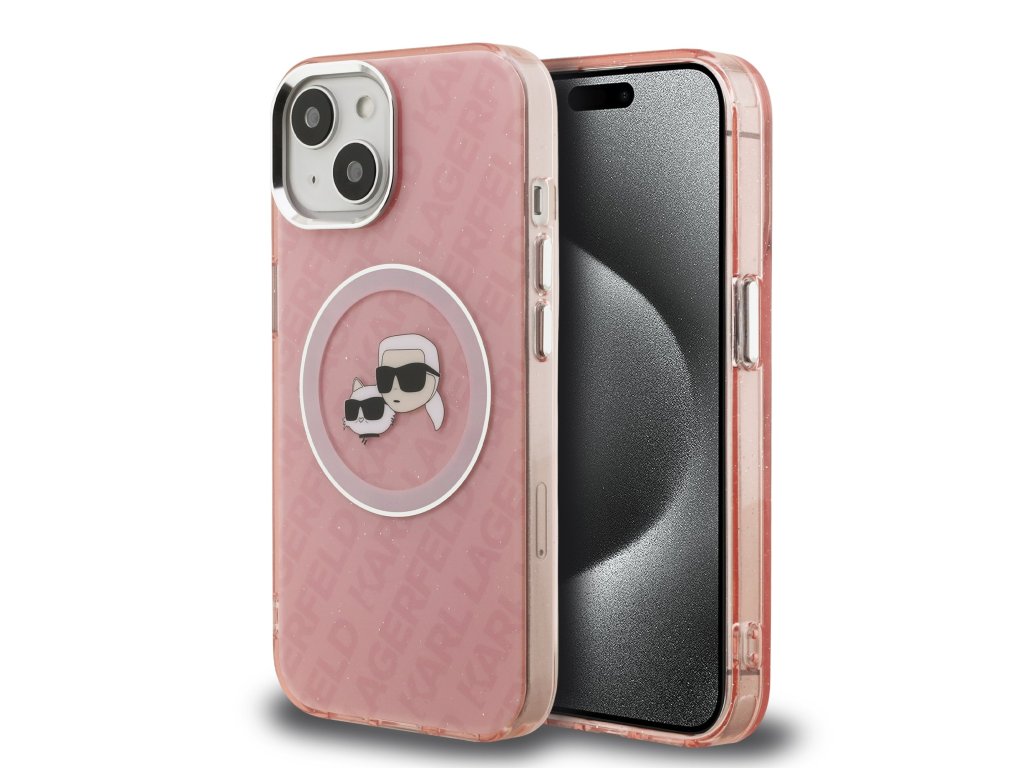 Karl Lagerfeld IML K&CH Heads Repeated Logo MagSafe Zadní Kryt pro iPhone 15 Pink