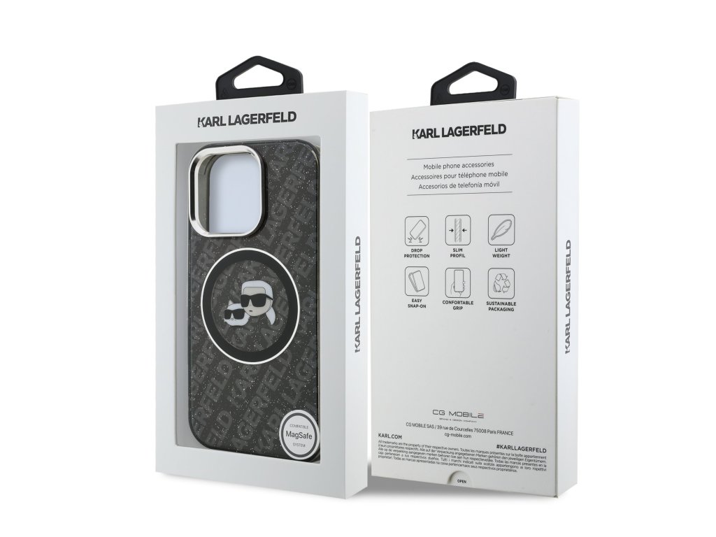 Karl Lagerfeld IML K&CH Heads Repeated Logo MagSafe zadní kryt je dokonalý doplněk pro váš telefon i outfit, který kombinuje funkčnost a styl v jednom.Tento kryt je vyroben z kombinace pevného PC plastu na zadní straně a TPU měkkého plastu na bocích, což vytváří dokonalou symbiózu odolnosti a pohodlí.
