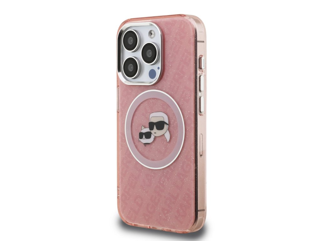 Karl Lagerfeld IML K&CH Heads Repeated Logo MagSafe Zadní Kryt pro iPhone 15 Pro Pink