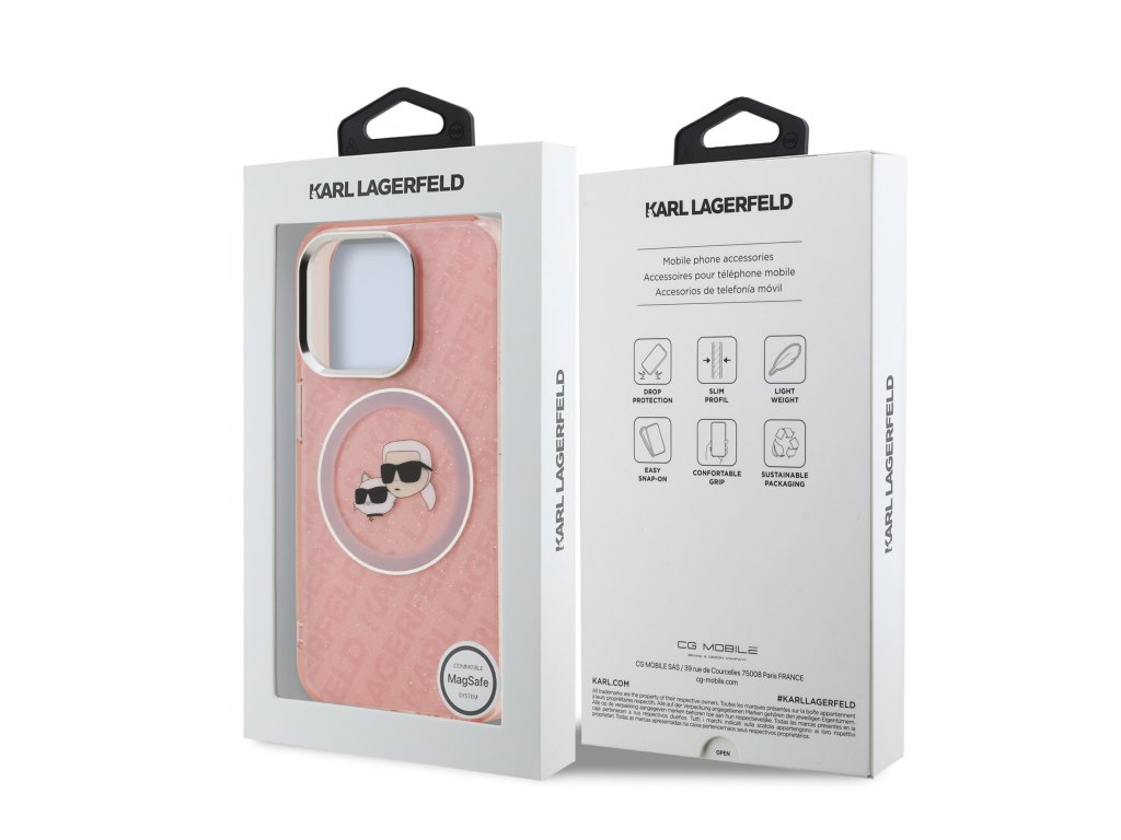 Karl Lagerfeld IML K&CH Heads Repeated Logo MagSafe zadní kryt je dokonalý doplněk pro váš telefon i outfit, který kombinuje funkčnost a styl v jednom.Tento kryt je vyroben z kombinace pevného PC plastu na zadní straně a TPU měkkého plastu na bocích, což vytváří dokonalou symbiózu odolnosti a pohodlí.