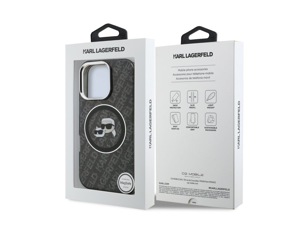 Karl Lagerfeld IML K&CH Heads Repeated Logo MagSafe Zadní Kryt pro iPhone 16 Pro Black