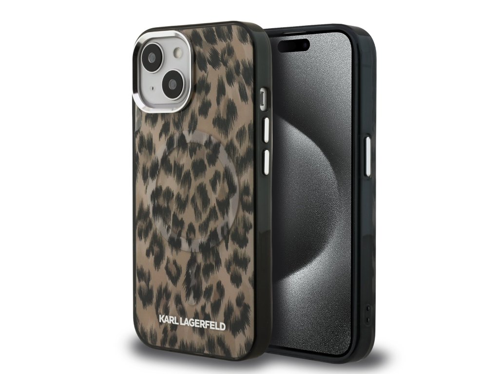 Karl Lagerfeld IML Leopard MagSafe Zadní Kryt pro iPhone 15 Brown