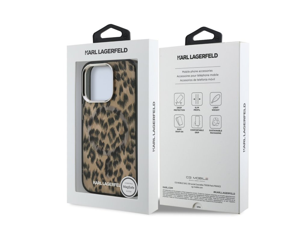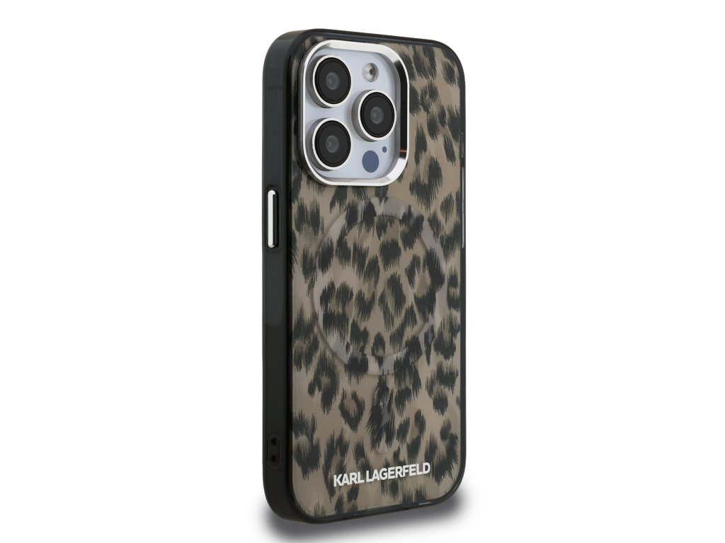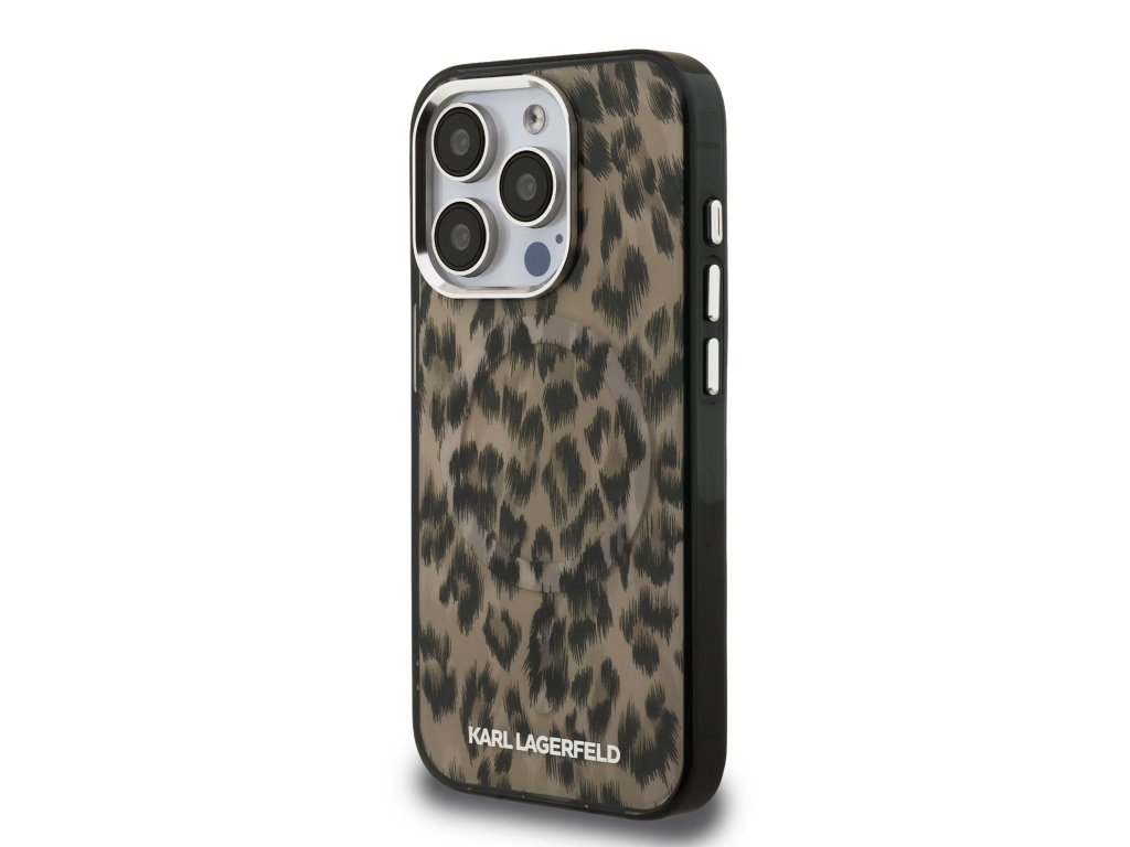 Karl Lagerfeld IML Leopard MagSafe Zadní Kryt pro iPhone 15 Pro Brown