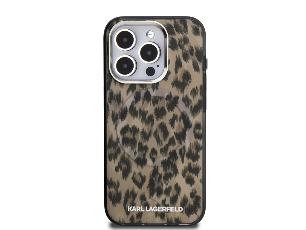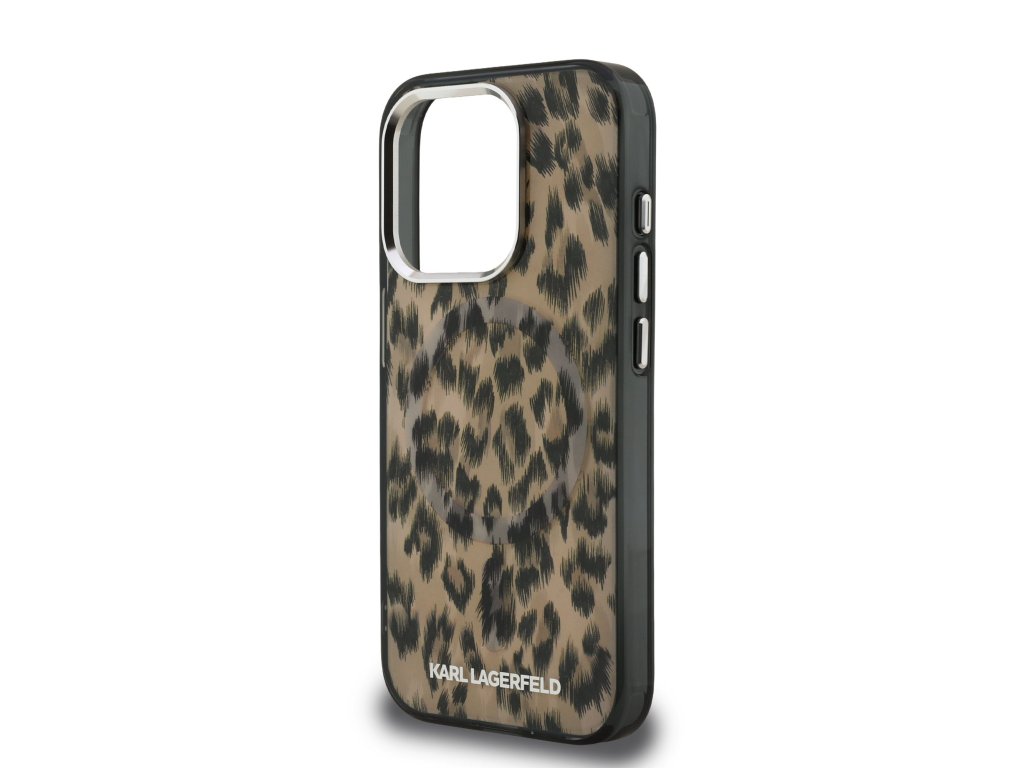 Karl Lagerfeld IML Leopard MagSafe Zadní Kryt pro iPhone 15 Pro Max Brown