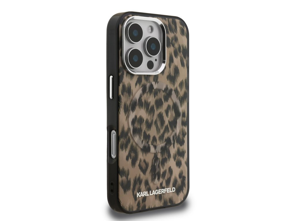Karl Lagerfeld IML Leopard MagSafe Zadní Kryt pro iPhone 16 Pro Max Brown
